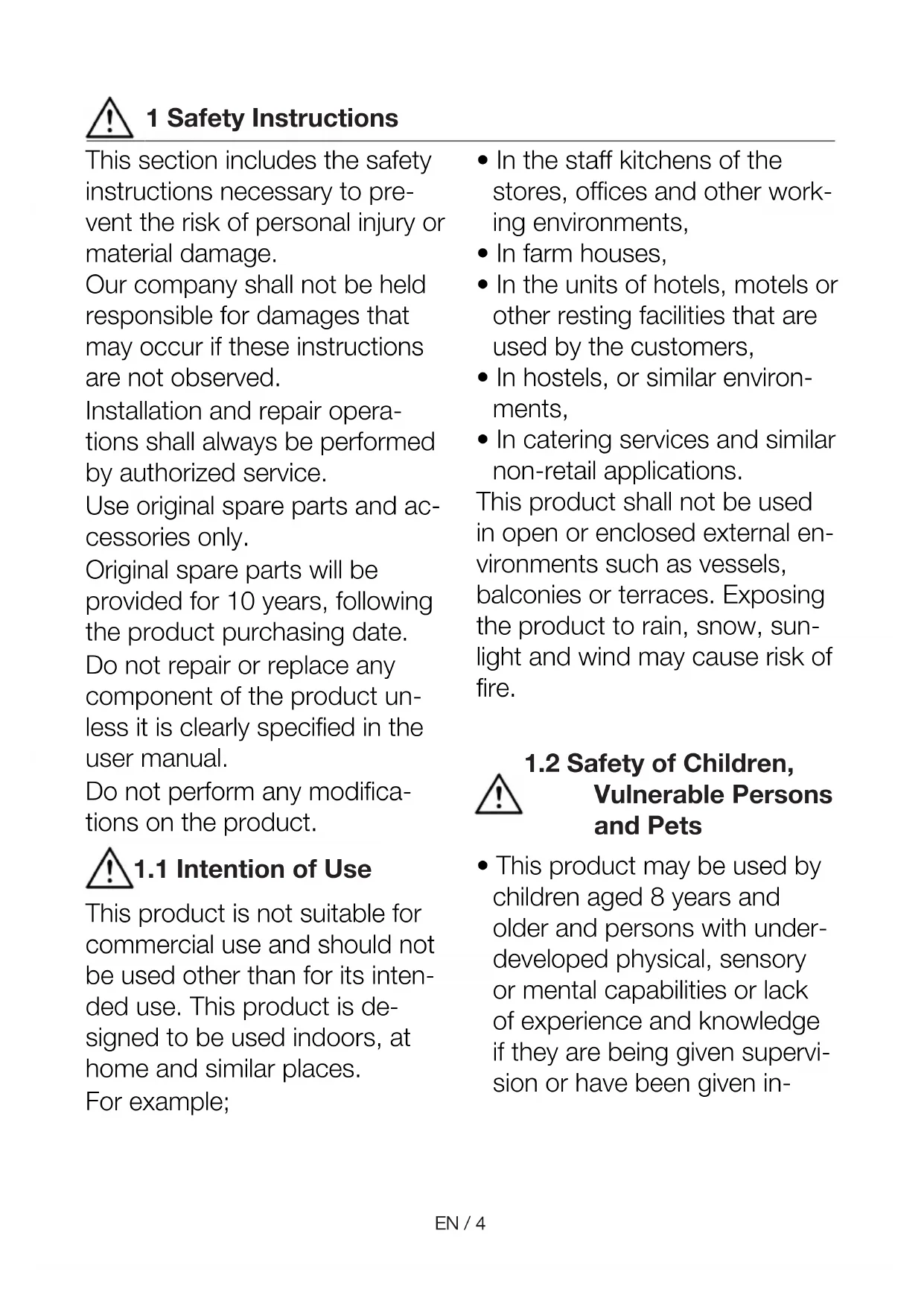 This product is not suitable for commercial use and should not be used other than for its inten- ded use. This product is de- signed to be used indoors, at home and similar places. For example;
