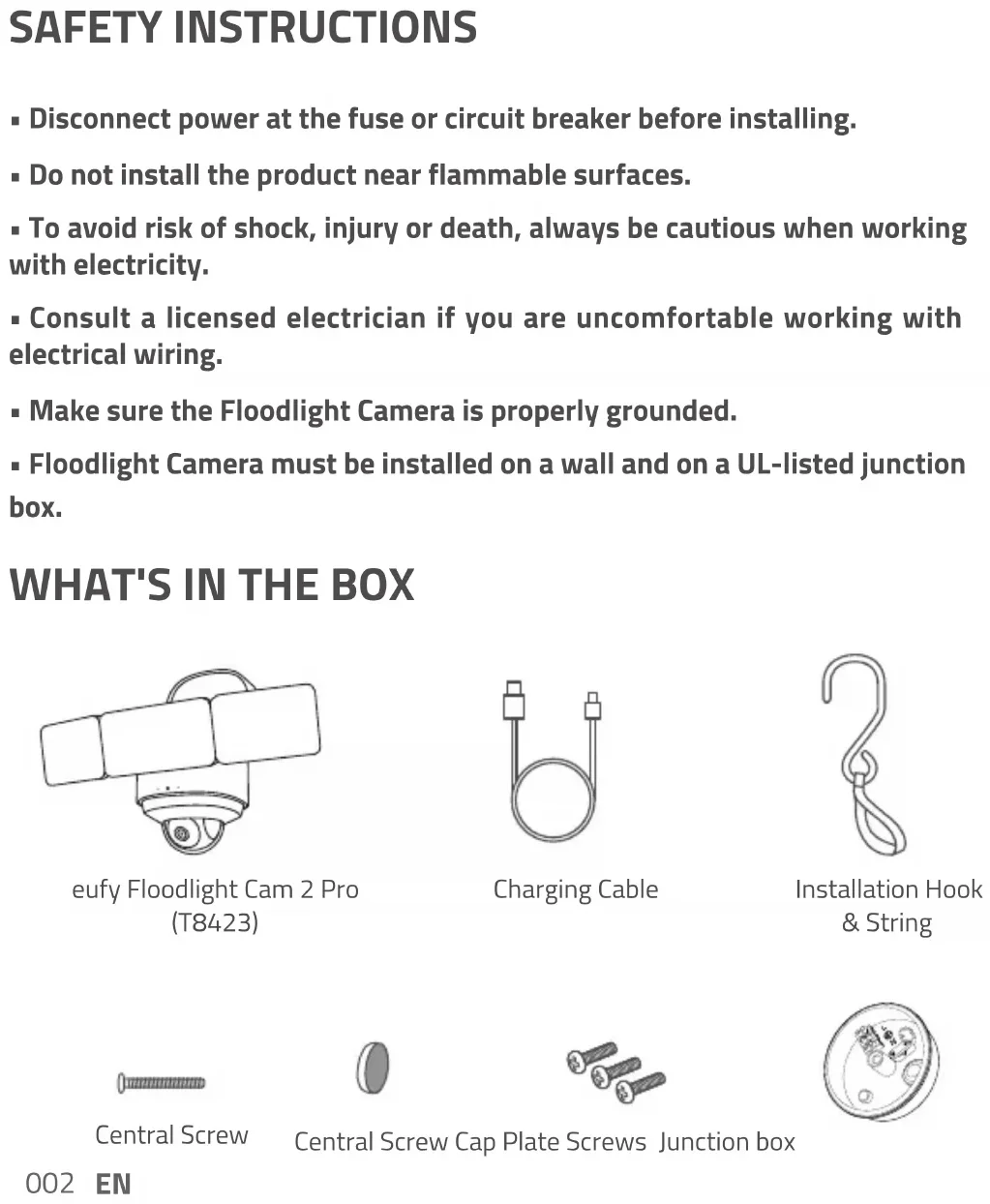 - Floodlight Camera must be installed on a wall and on a UL-listed junction box.