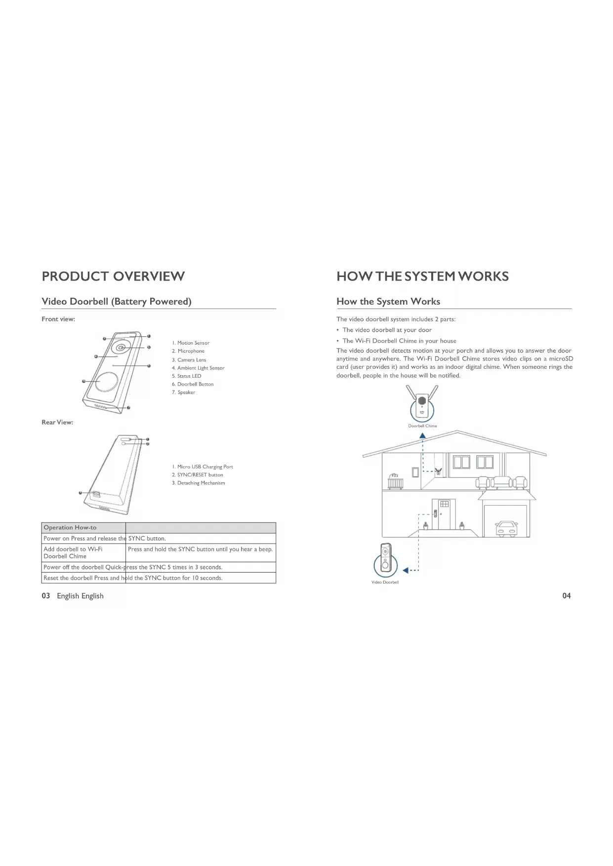 How the System Works The video doorbell system includes 2 parts: