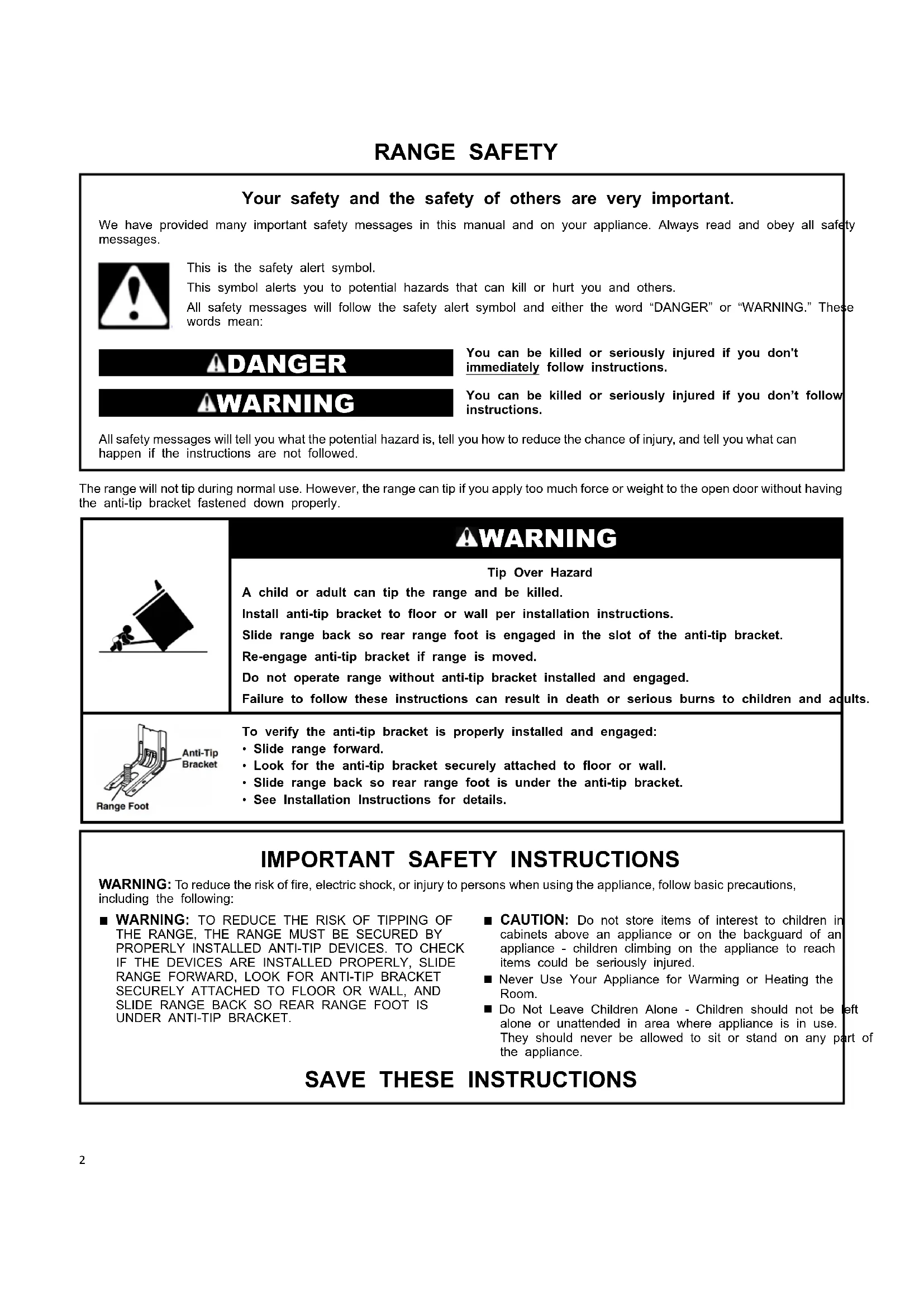 the “Verify Anti-Tip Bracket Is Installed and Engaged” section.