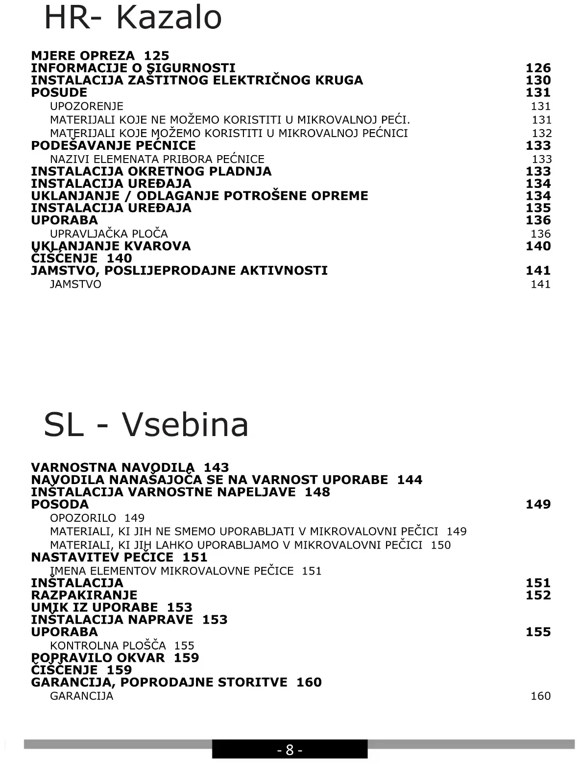 JAMSTVO 141 HR- Kazalo SL - Vsebina- 9 - Dear customer, From now on, your daily housework will be easier than ever before. Your appliance is excepon- ally easy to use and extremely ecient. Aer reading these Operang Instrucons, operang the appliance will be easy. Before being packaged and leaving the manufacturer, the appliance was thoroughly checked with regard to safety and funconality. Before using the appliance, please carefully read these Operang Instrucons. By following these instrucons carefully you will be able to avoid any problems in using the appliance. It is important to keep these Operang Instrucons and store them in a safe place so that they can be consulted at any me. Follow these instrucons carefully in order to avoid possible accidents. Sincerely,- 10 - PRECAUTIONS
