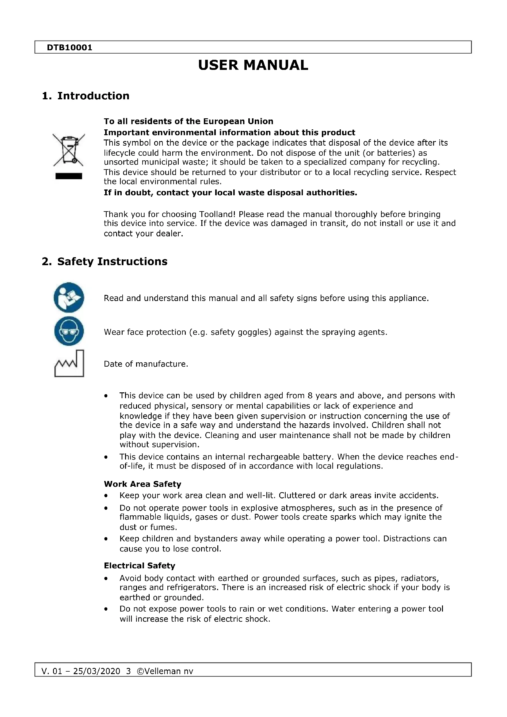 DTB10001 - Manual sprayer Toolland - Free user manual and instructions