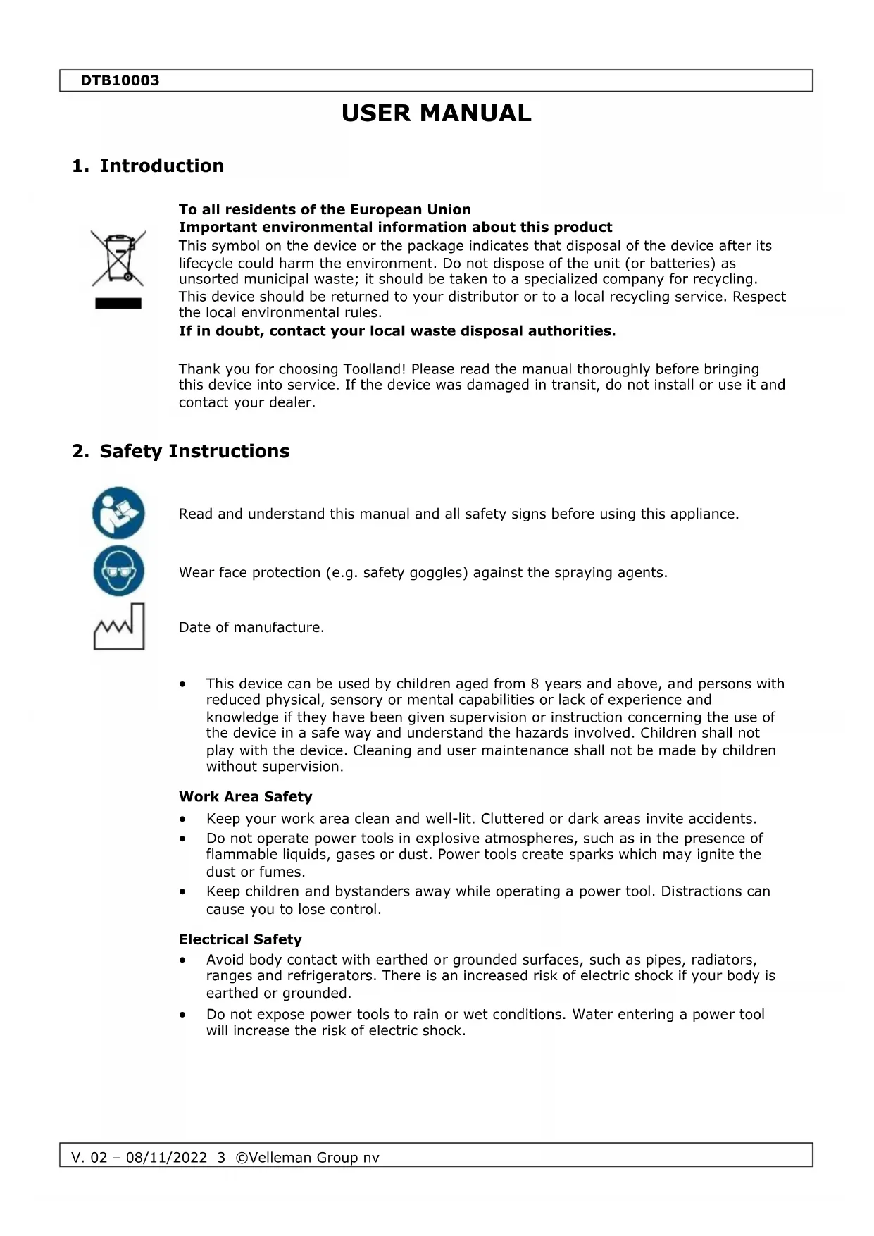 The copyright to this manual is owned by Velleman Group nv. All worldwide rights reserved. No part of this manual may be copied, reproduced, translated or reduced to any electronic medium or otherwise without the prior written consent of the copyright holder.DTB10003