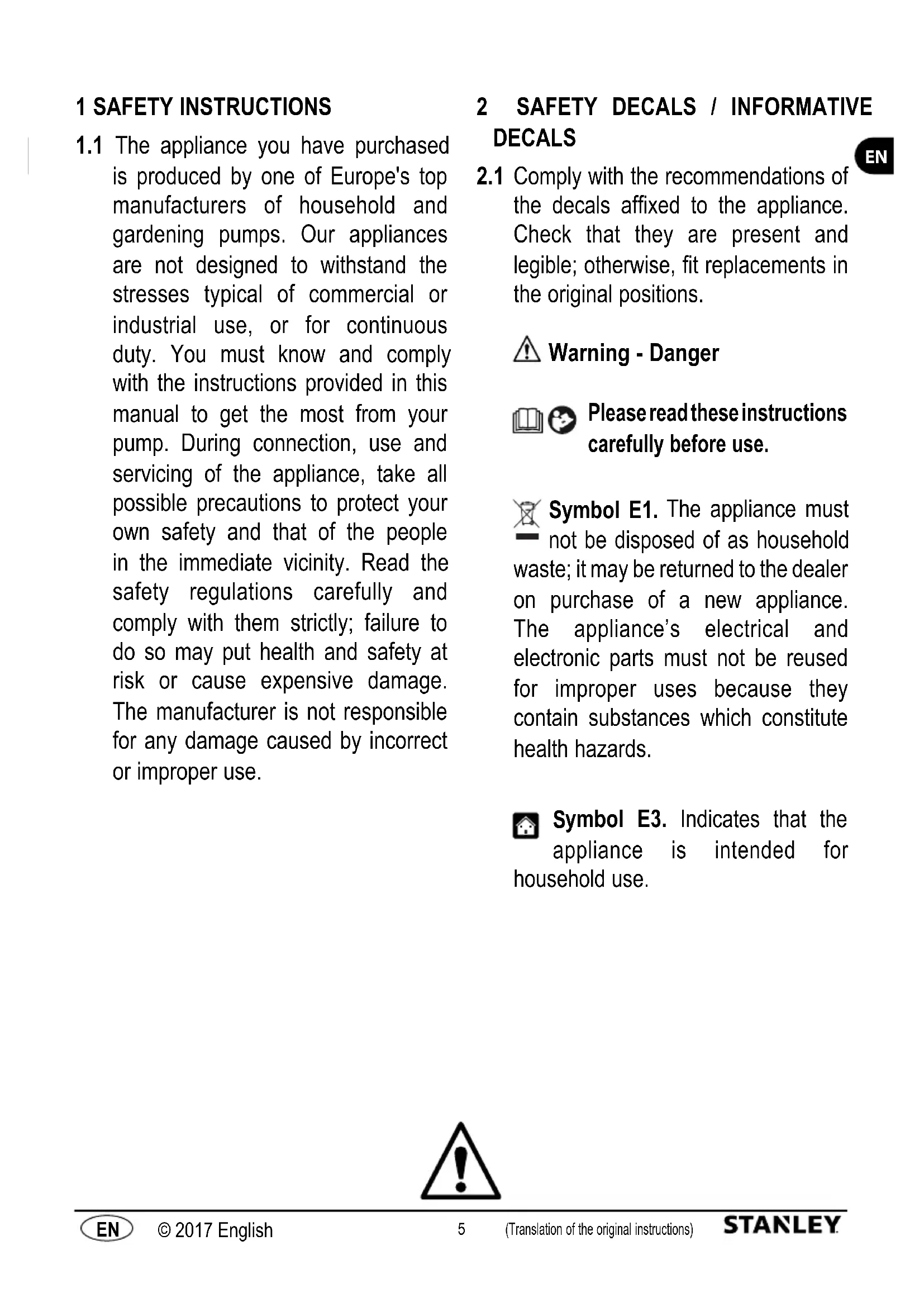 ymbol E3. Indicates that the appliance is intended for household use.6 (Translation of the original instructions) © 2017 English