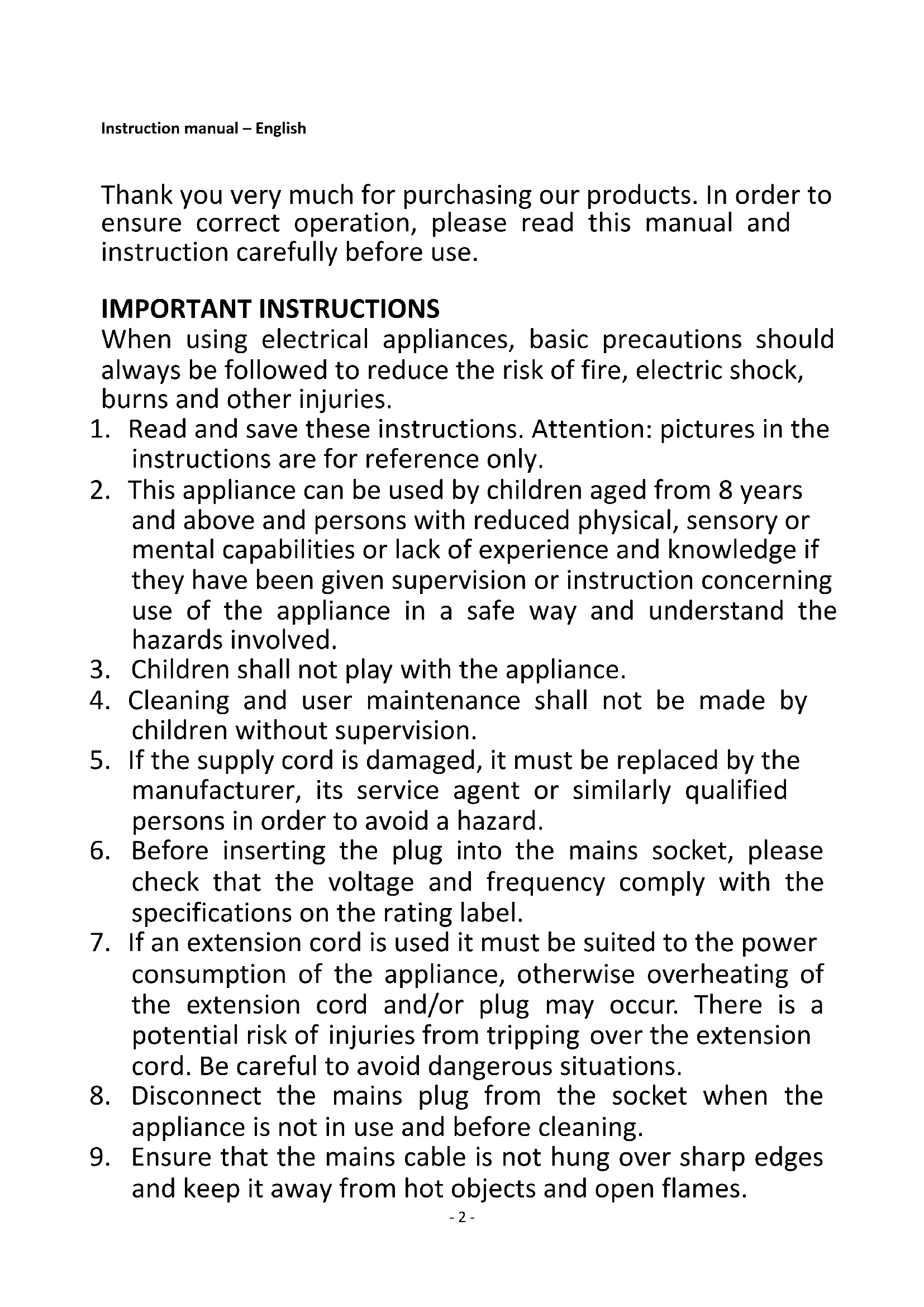 2. This appliance can be used by children aged from 8 years