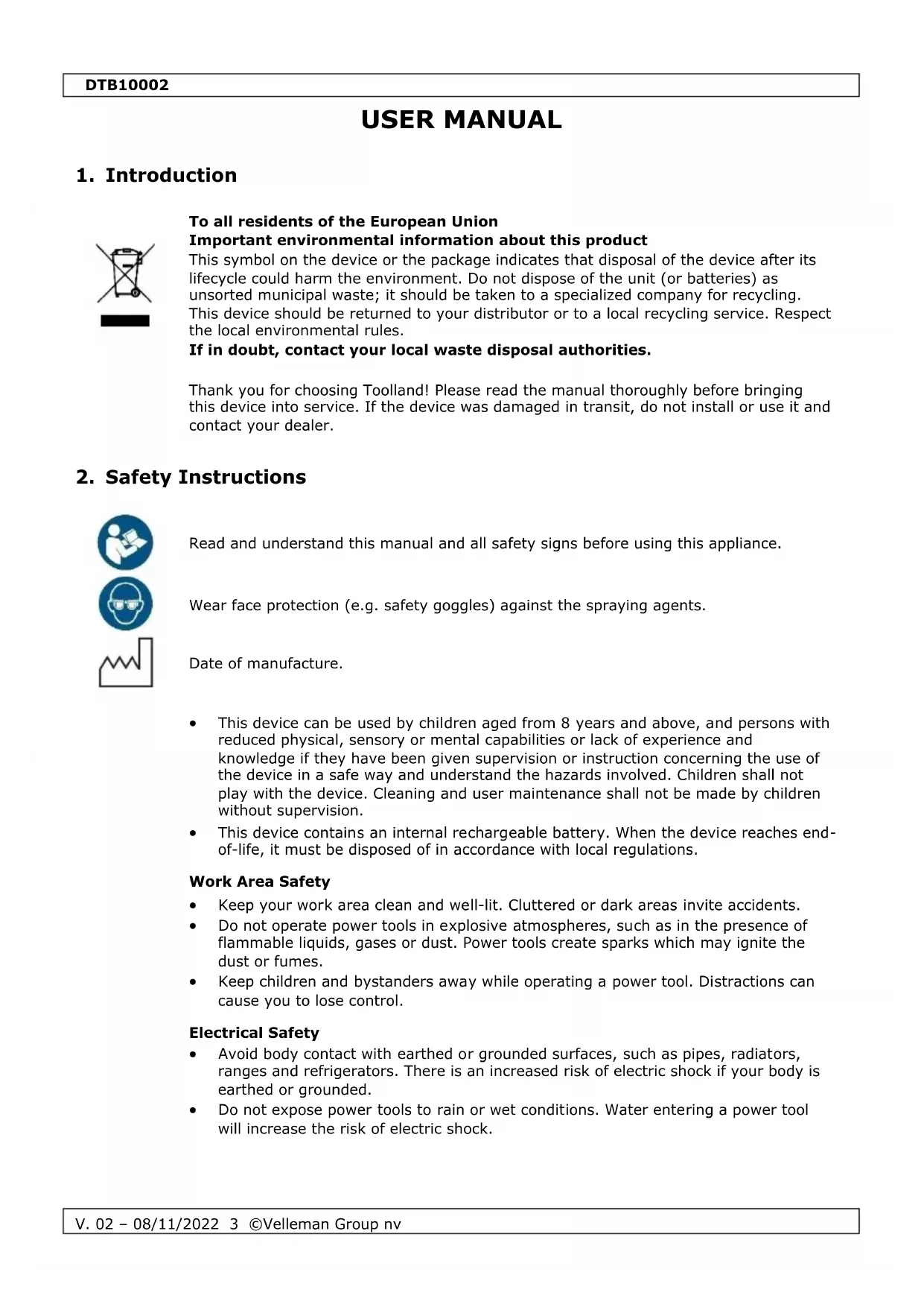 The copyright to this manual is owned by Velleman Group nv. All worldwide rights reserved. No part of this manual may be copied, reproduced, translated or reduced to any electronic medium or otherwise without the prior written consent of the copyright holder.DTB10002