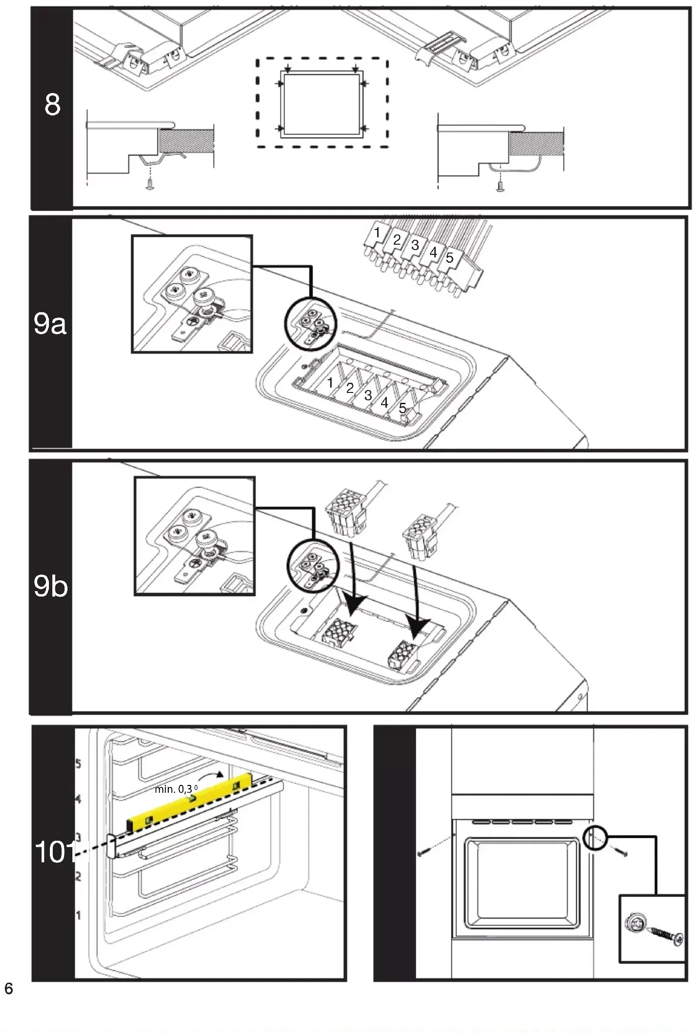 - Make sure that the user cannot reach the electrical connections after the installation.