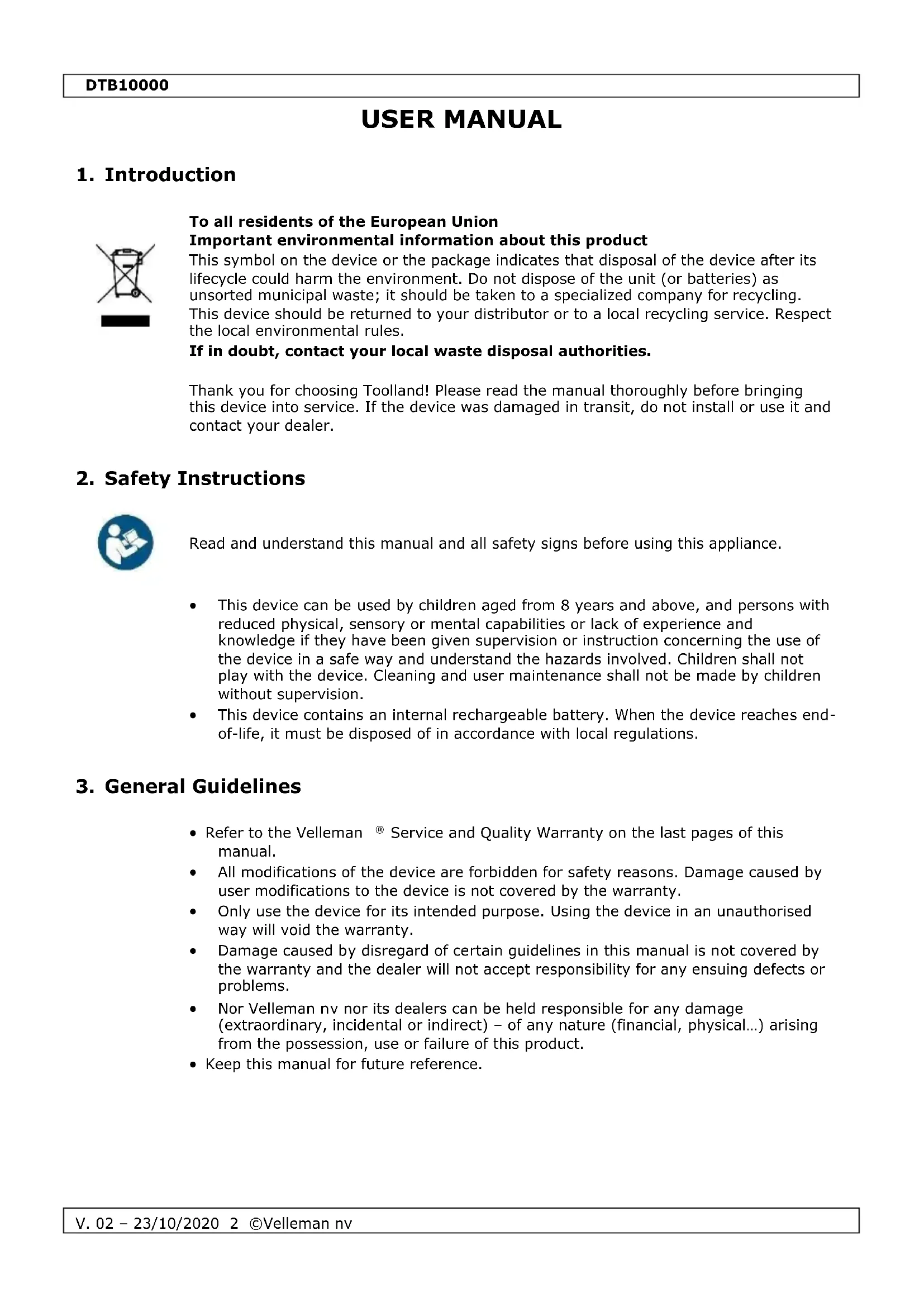 V. 02 – 23/10/2020 5 ©Velleman nv