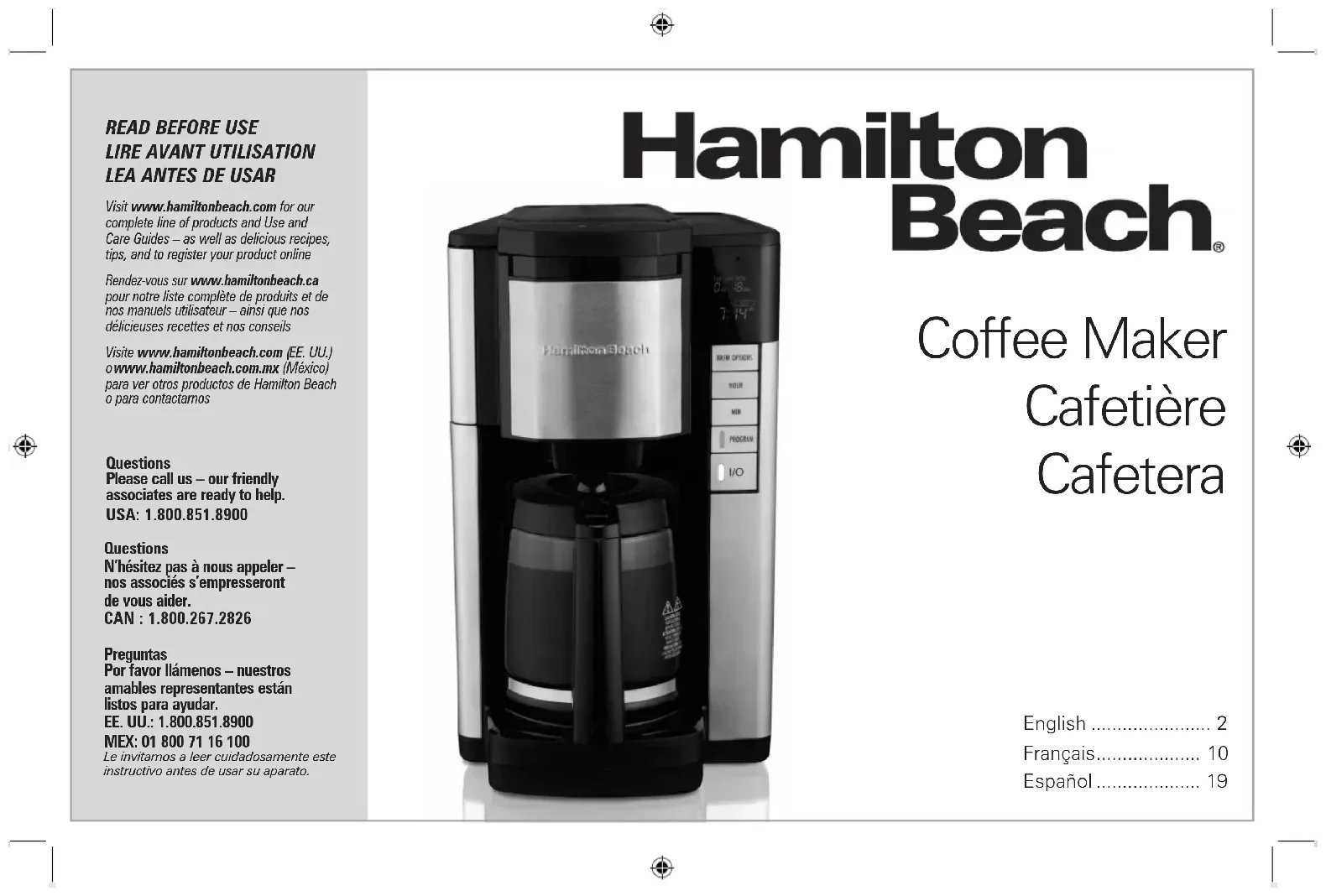 Download the instructions for your Coffee machine in PDF format for free! Find your manual 46381 - HAMILTON BEACH and take your electronic device back in hand. On this page are published all the documents necessary for the use of your device. 46381 by HAMILTON BEACH.