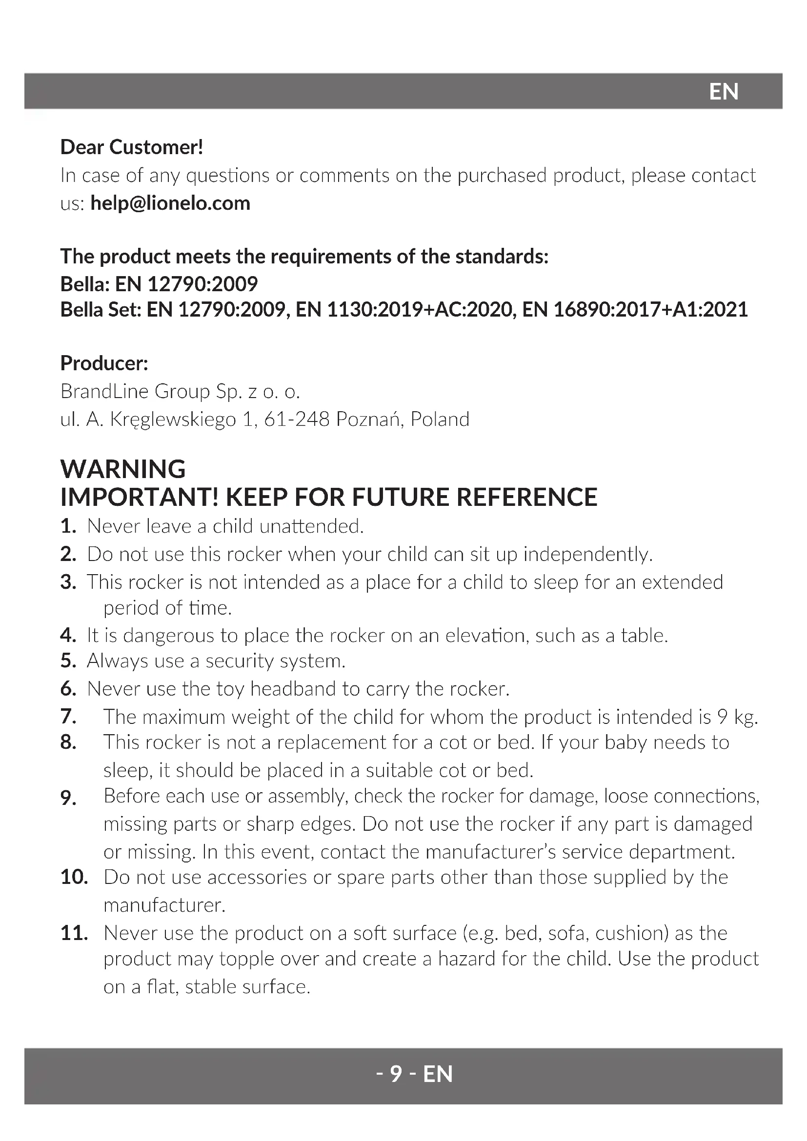 Find the device manual for free Bella Lionelo in PDF.