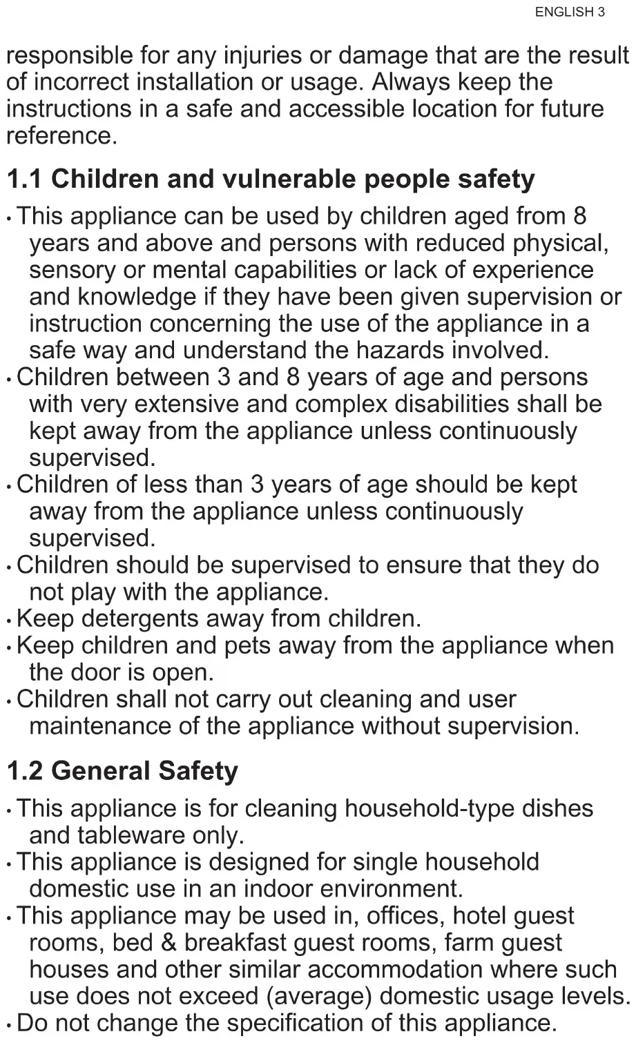 - Children between 3 and 8 years of age and persons with very extensive and complex disabilities shall be kept away from the appliance unless continuously supervised.