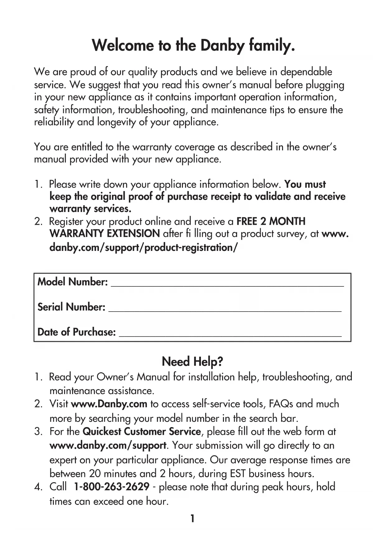 WARRANTY EXTENSION after fi lling out a product survey, at www. danby.com/support/product-registration/ Need Help?