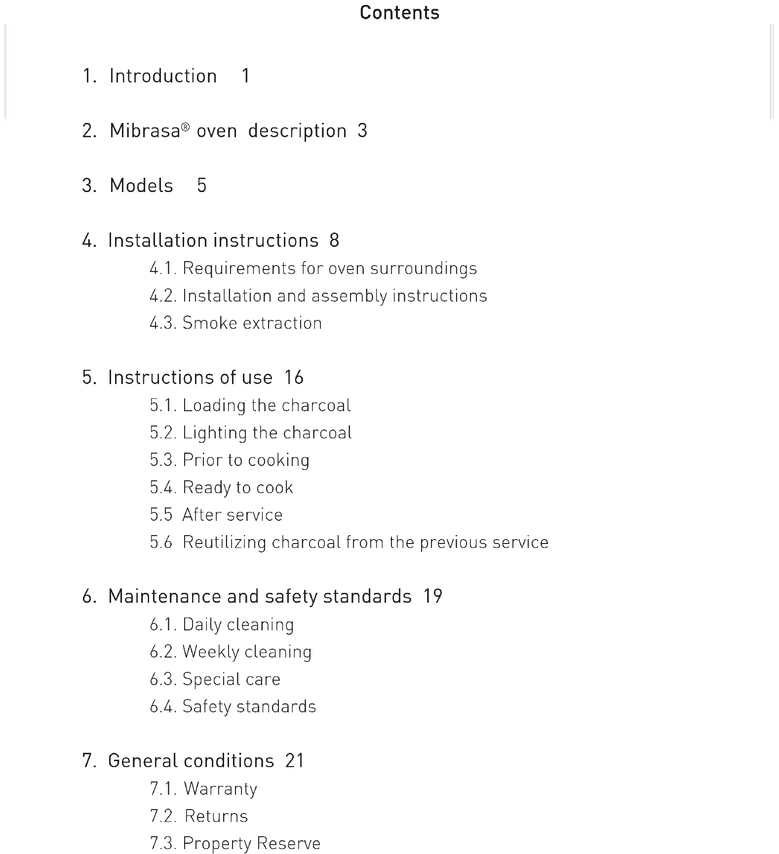 - Do not use alcohol, oil or other liquids similar to ignite or rekindle hot coals. Use only Mibrasa