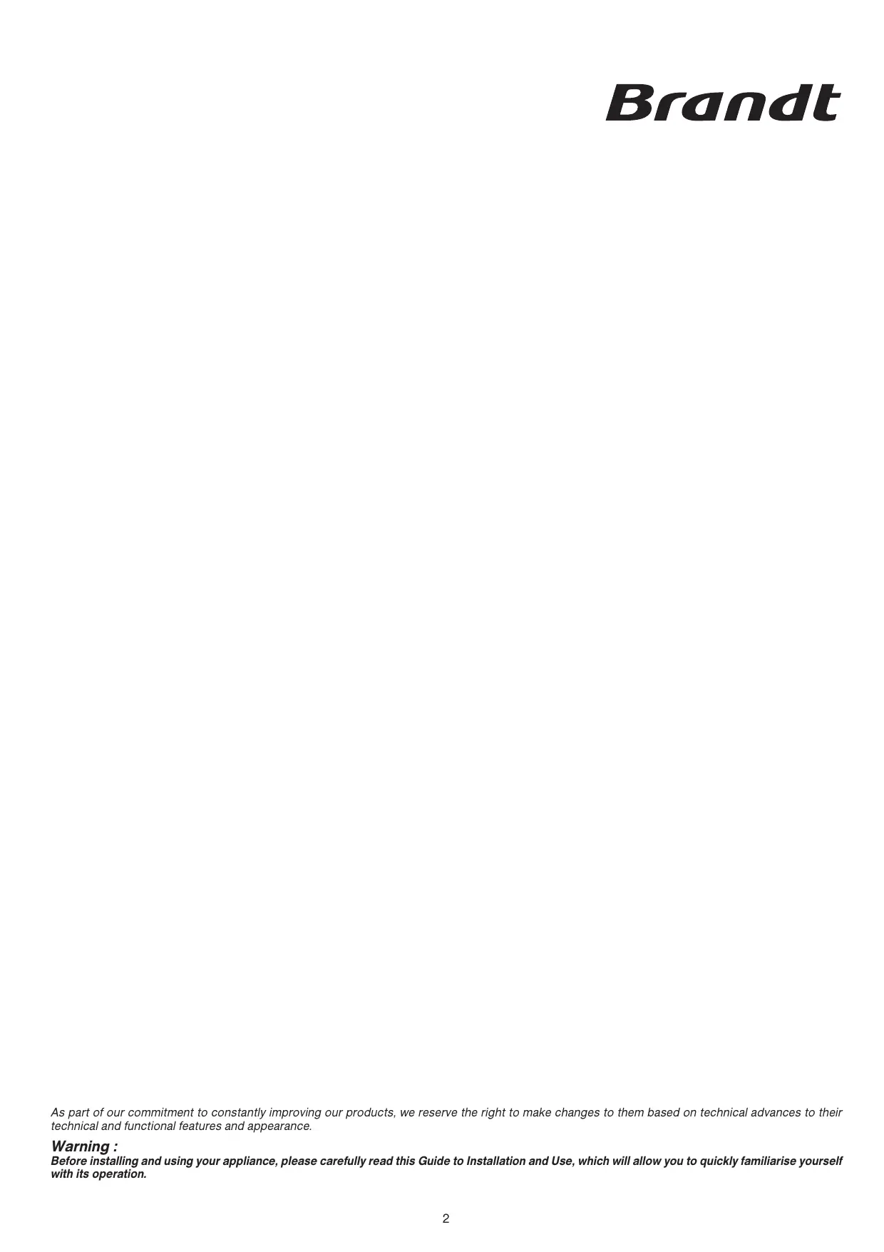Before installing and using your appliance, please carefully read this Guide to Installation and Use, which will allow you to quickly familiarise yourself with its operation.