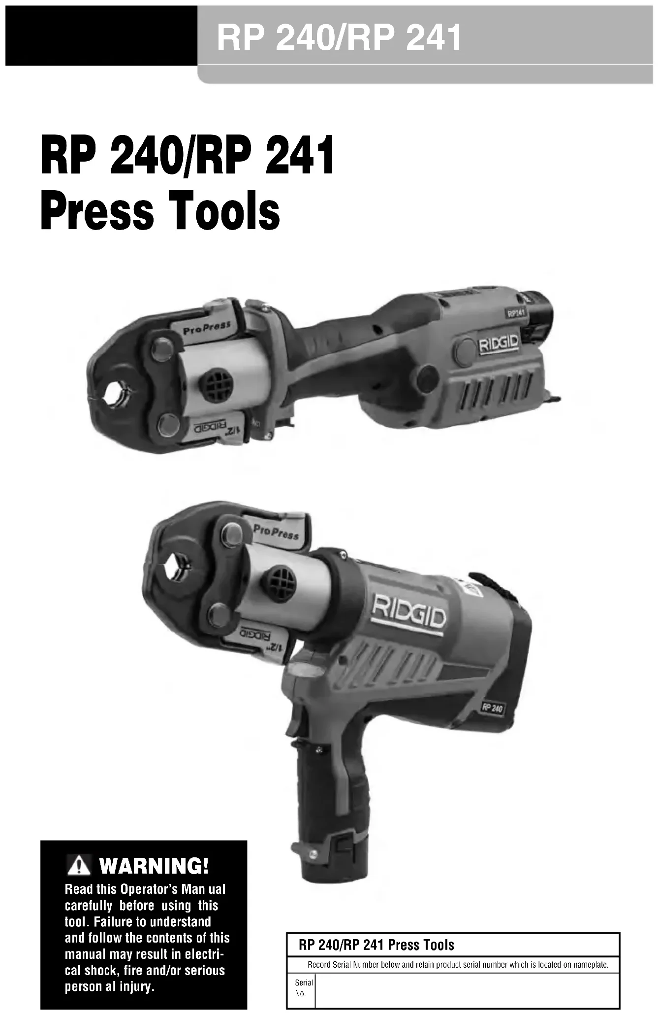 999-995-106.10_REV. DRP 240/RP 241 Press Tools General Safety Rules* WARNING Read all safety warnings and instruc-tions. Failure to follow the warnings andinstructions may result in electric shock,fire and/or serious injury.