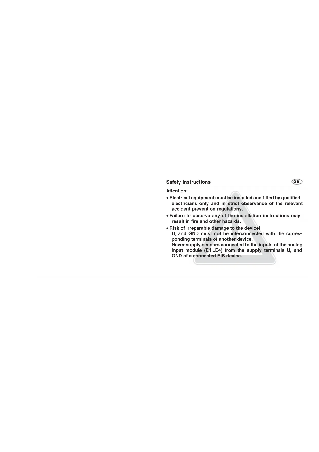 and GND must not be interconnected with the corres- ponding terminals of another device. Never supply sensors connected to the inputs of the analog input module (E1...E4) from the supply terminals U