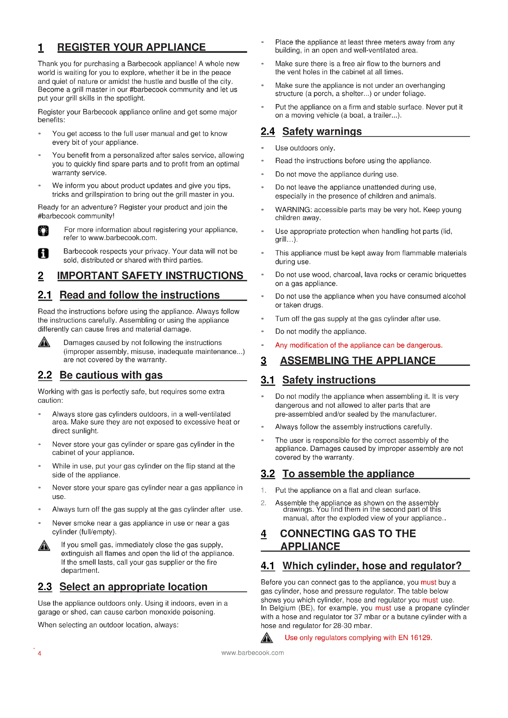 We inform you about product updates and give you tips, tricks and grillspiration to bring out the grill master in you. Ready for an adventure? Register your product and join the #barbecook community! For more information about registering your appliance, refer to www.barbecook.com.