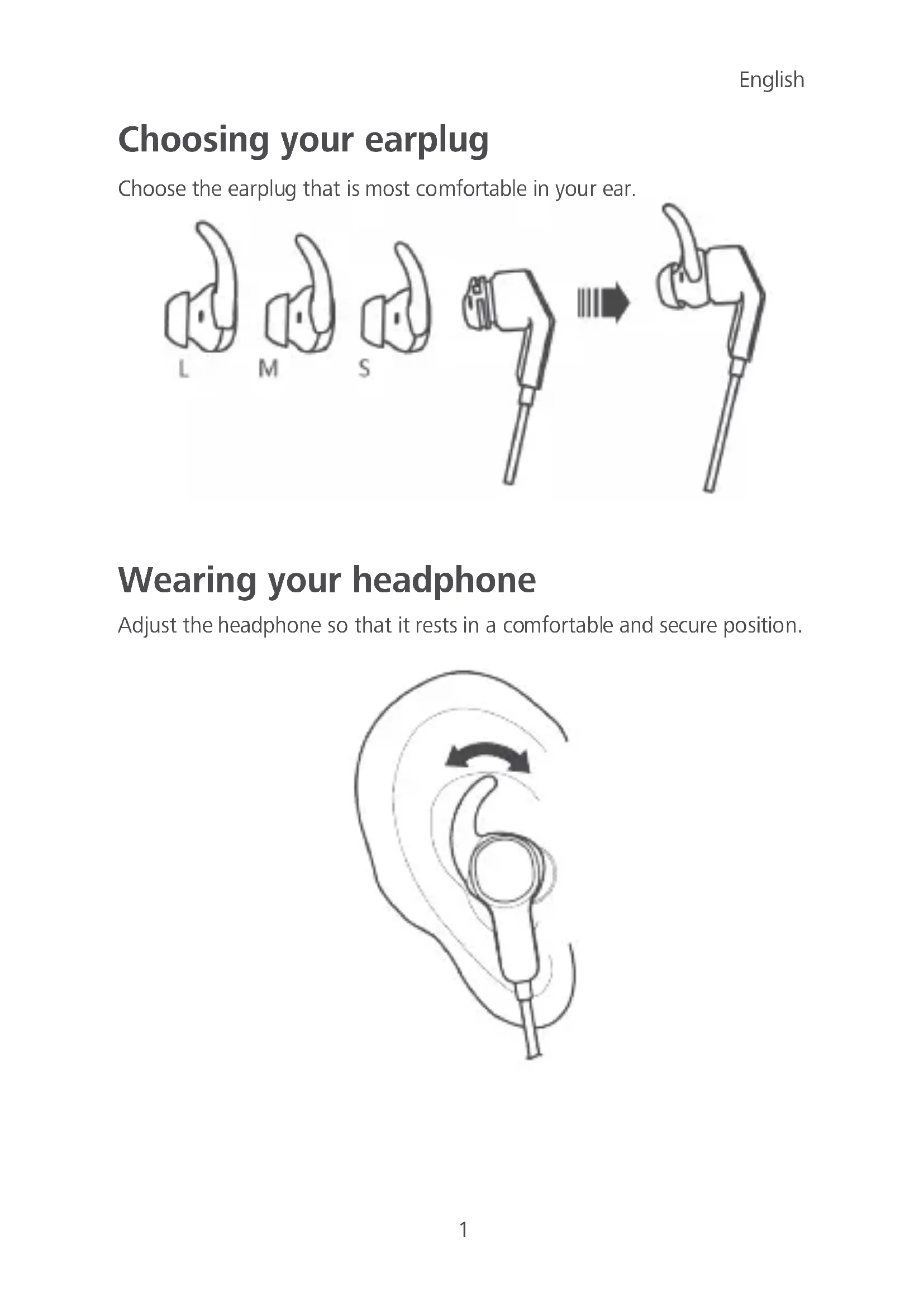 Wearing your headphone Adjust the headphone so that it rests in a comfortable and secure position.English