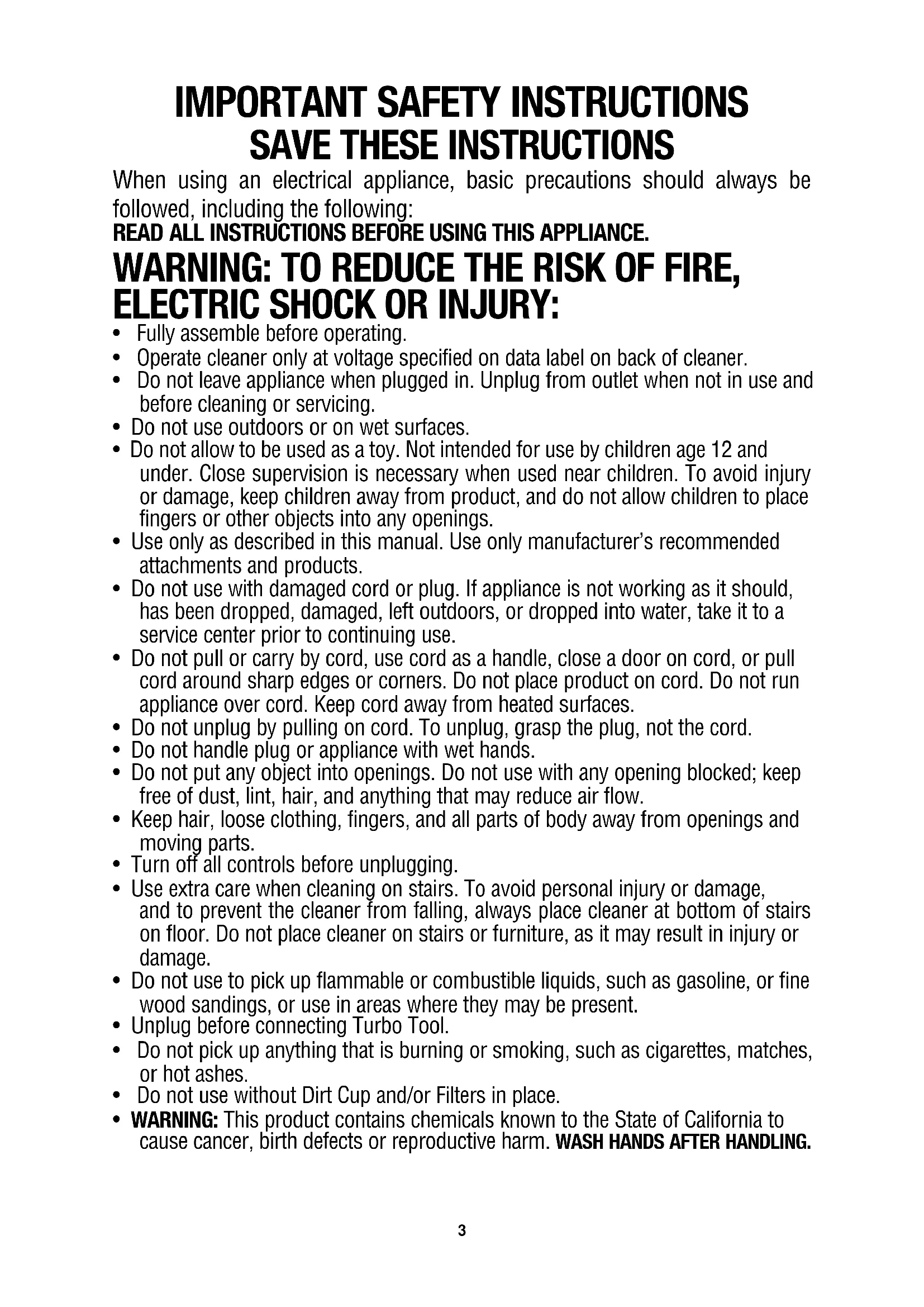 When using an electrical appliance, basic precautions should always be followed, including the following: READ ALL INSTRUCTIONS BEFORE USING THIS APPLIANCE.