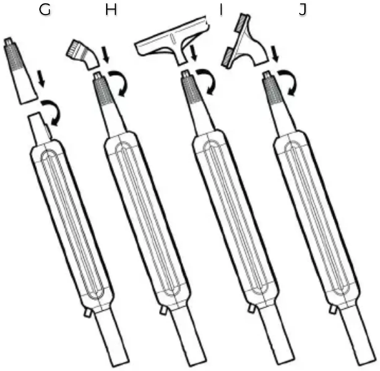 Install the jet nozzle (14) on the device body (4) (see above). Install the crevice brush (17) on the jet nozzle (14) according to figure J Operation