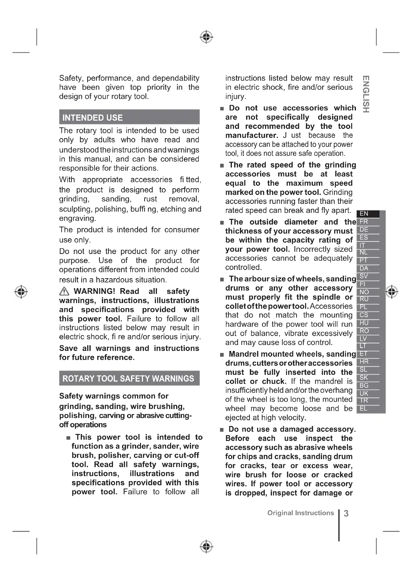 Original InstructionsWear dust mask Secure long hair above shoulder level to prevent entanglement in moving parts.