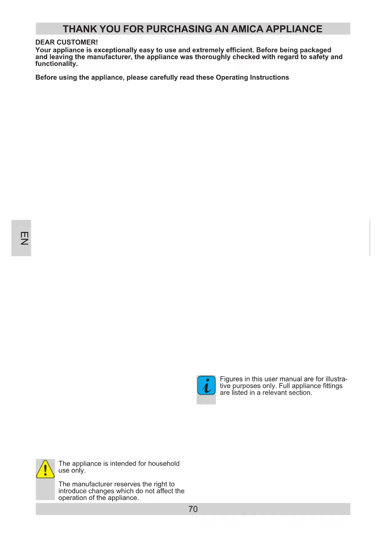 Figures in this user manual are for illustra- tive purposes only. Full appliance ttings are listed in a relevant section. EN71