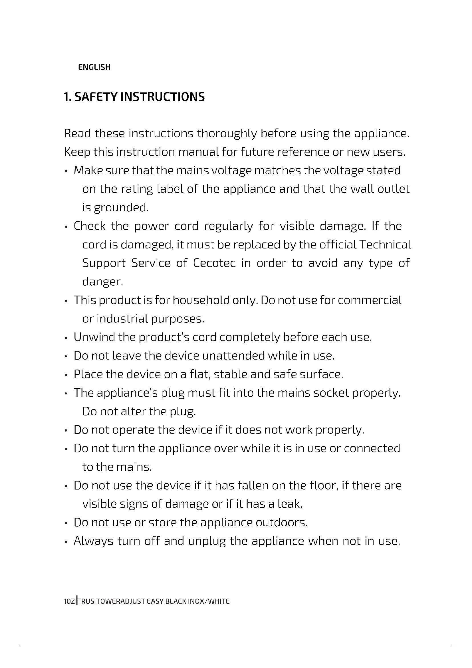 USER MANUAL Zitrus TowerAdjust Easy Inox CECOTEC