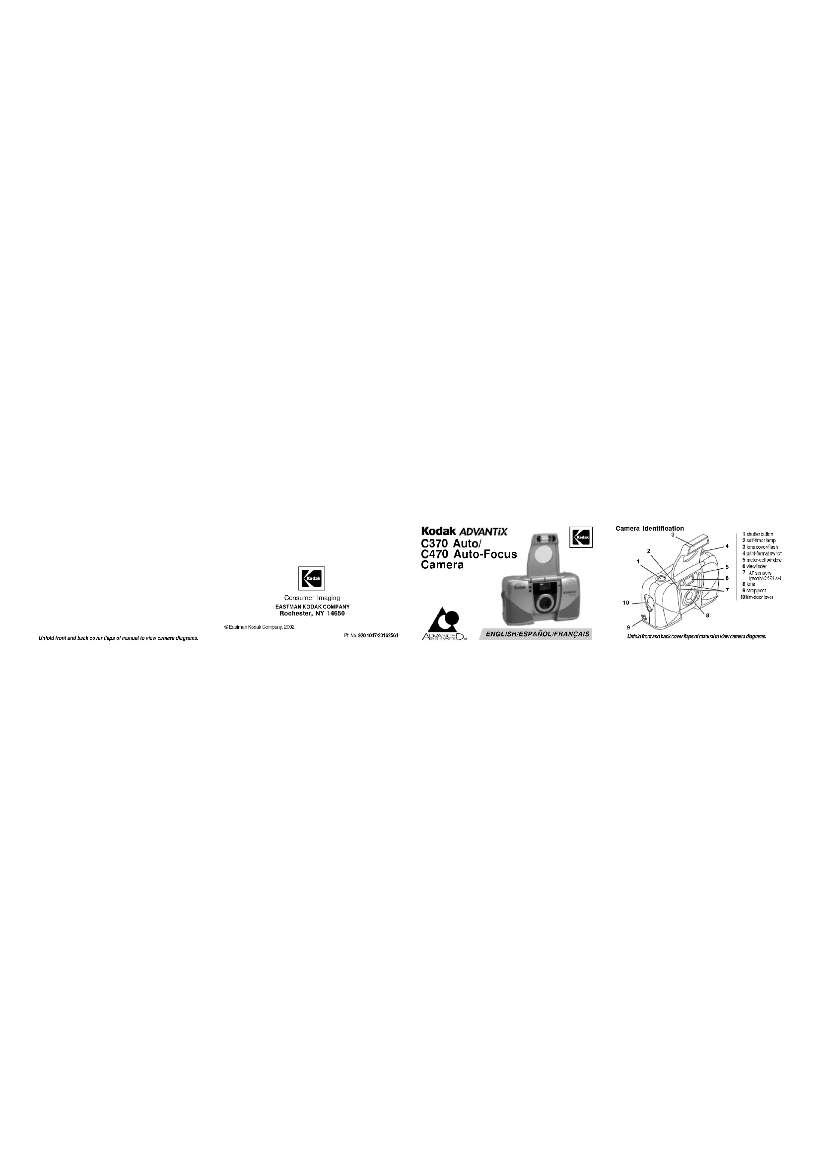 Rochester, NY 14650 © Eastman Kodak Company, 2002 Unfold front and back cover flaps of manual to view camera diagrams. Camera Identification Unfold front and back cover flaps of manual to view camera diagrams.