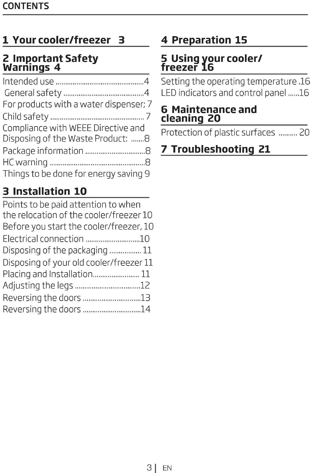 - For products with a freezer compartment; Do not eat cone ice cream and ice cubes immediately after you take them out of the freezer compartment! (This may cause frostbite in your mouth.) 2 Important Safety WarningsEN
