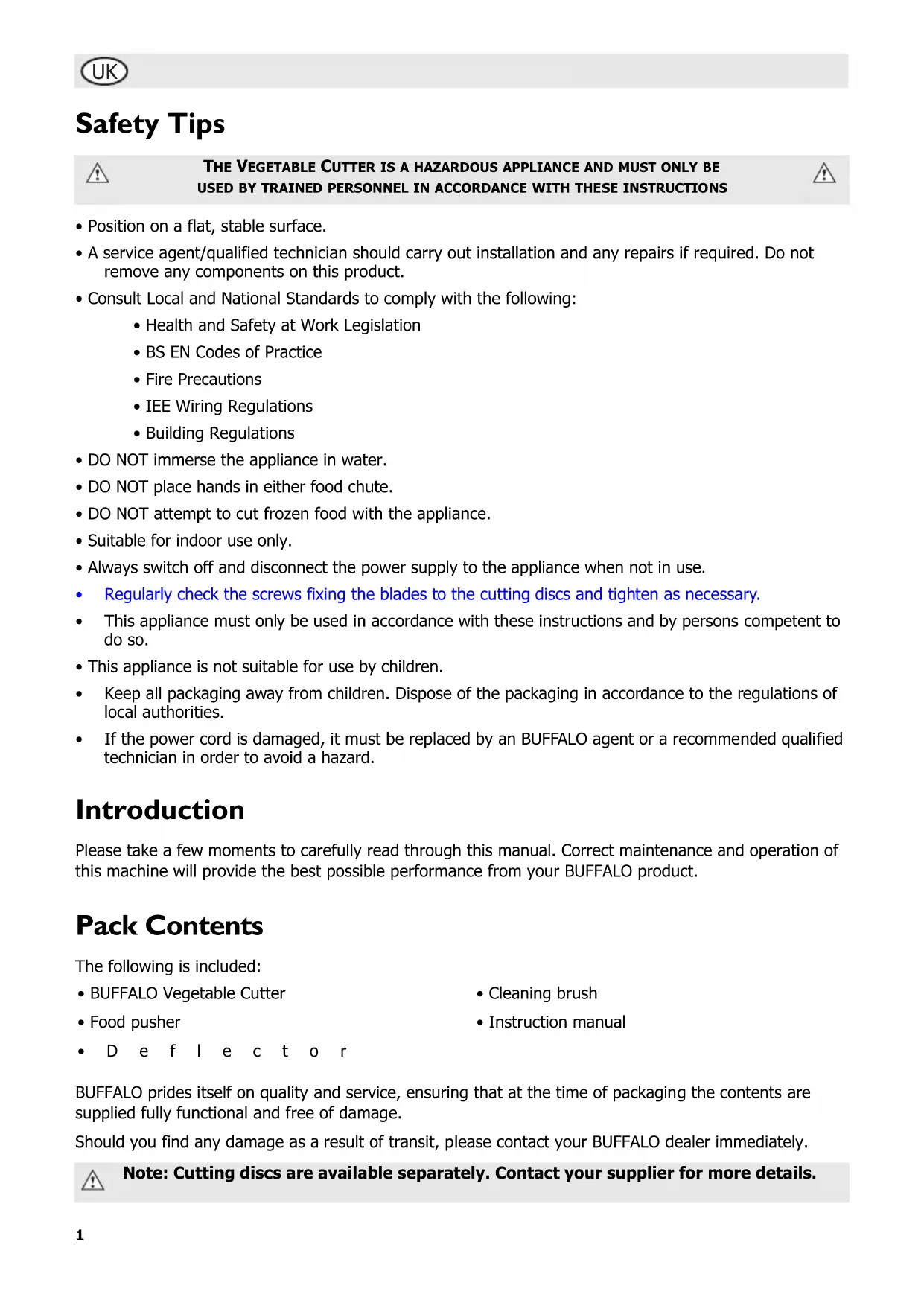 Note: Cutting discs are available separately. Contact your supplier for more details.