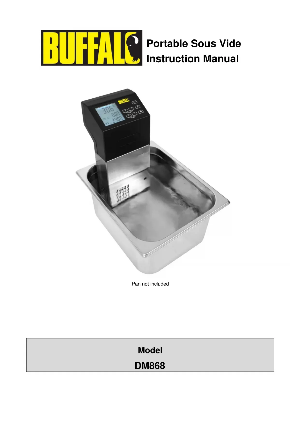 Introduction Please take a few moments to carefully read through this manual. Correct maintenance and operation of this machine will provide the best possible performance from your BUFFALO product. Pack Contents The following is included: BUFFALO Portable Sous Vide Water Circulator Instruction Manual BUFFALO prides itself on quality and service, ensuring that at the time of packaging the contents are supplied fully functional and free of damage. Should you find any damage as a result of transit, please contact your BUFFALO dealer immediately3 Telephone Helpline: 0845 146 2887 UK Function LCD Display