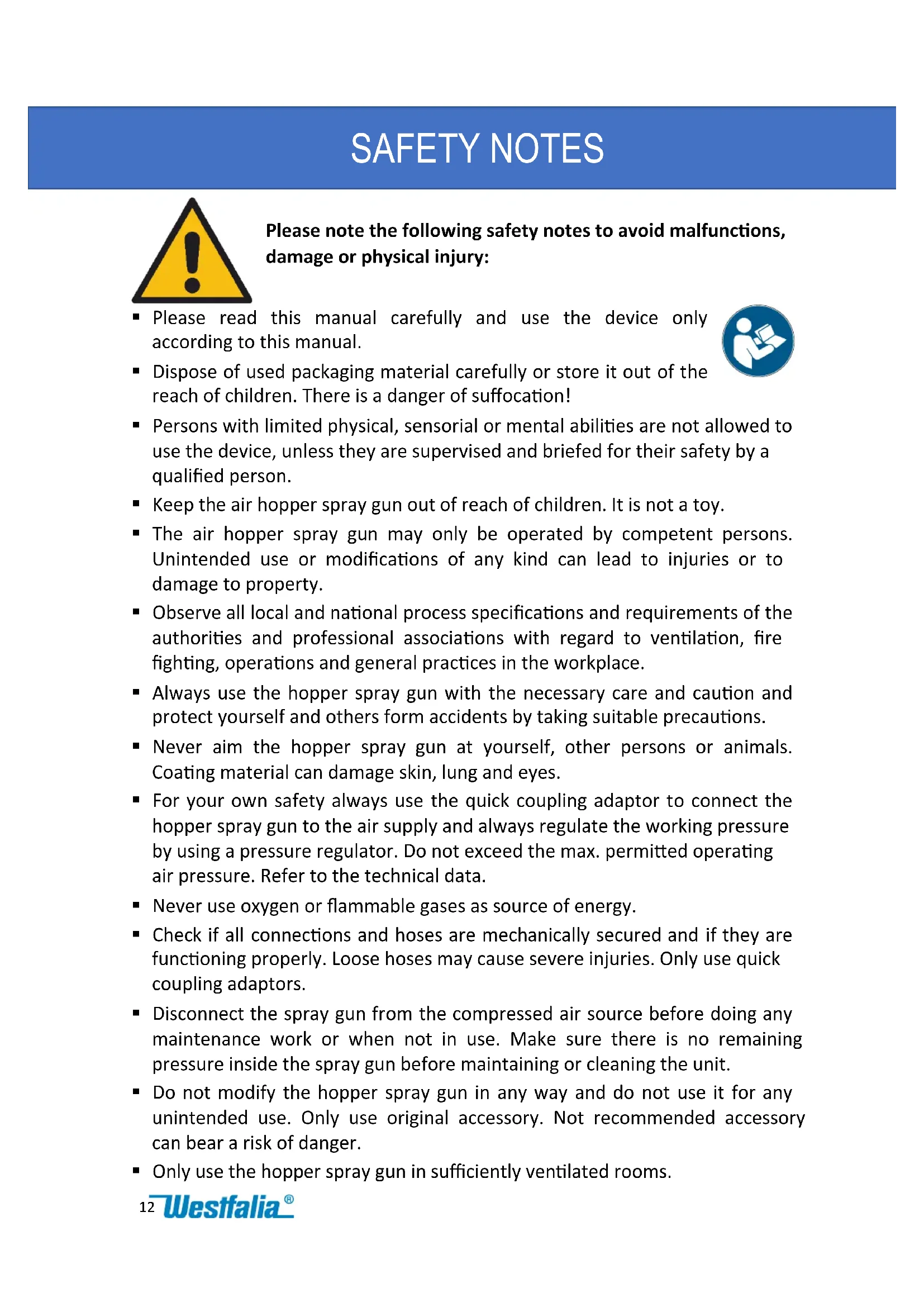 Download the instructions for your Paint spray in PDF format for free! Find your manual 825010 - Westfalia and take your electronic device back in hand. On this page are published all the documents necessary for the use of your device. 825010 by Westfalia.