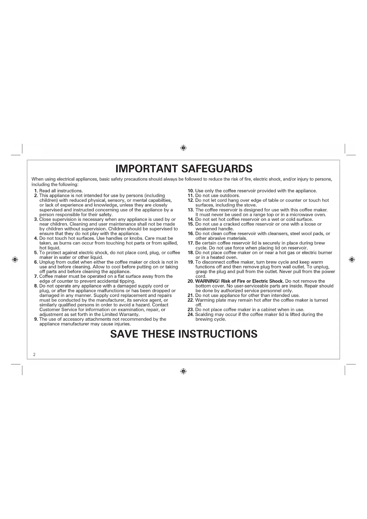 23. Do not place coffee maker in a cabinet when in use.