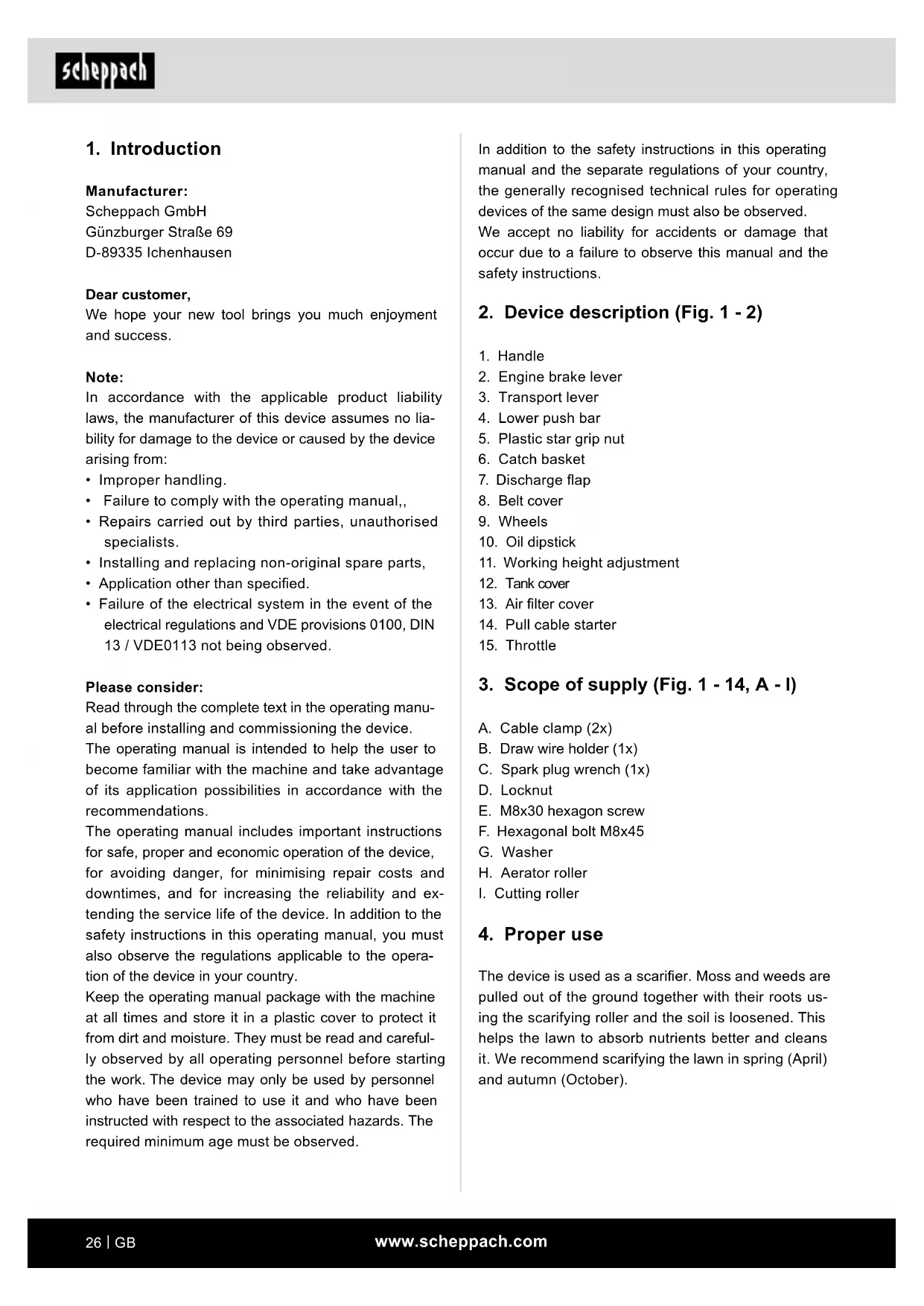 SC50Vario - Scarifier SCHEPPACH - Free user manual and instructions