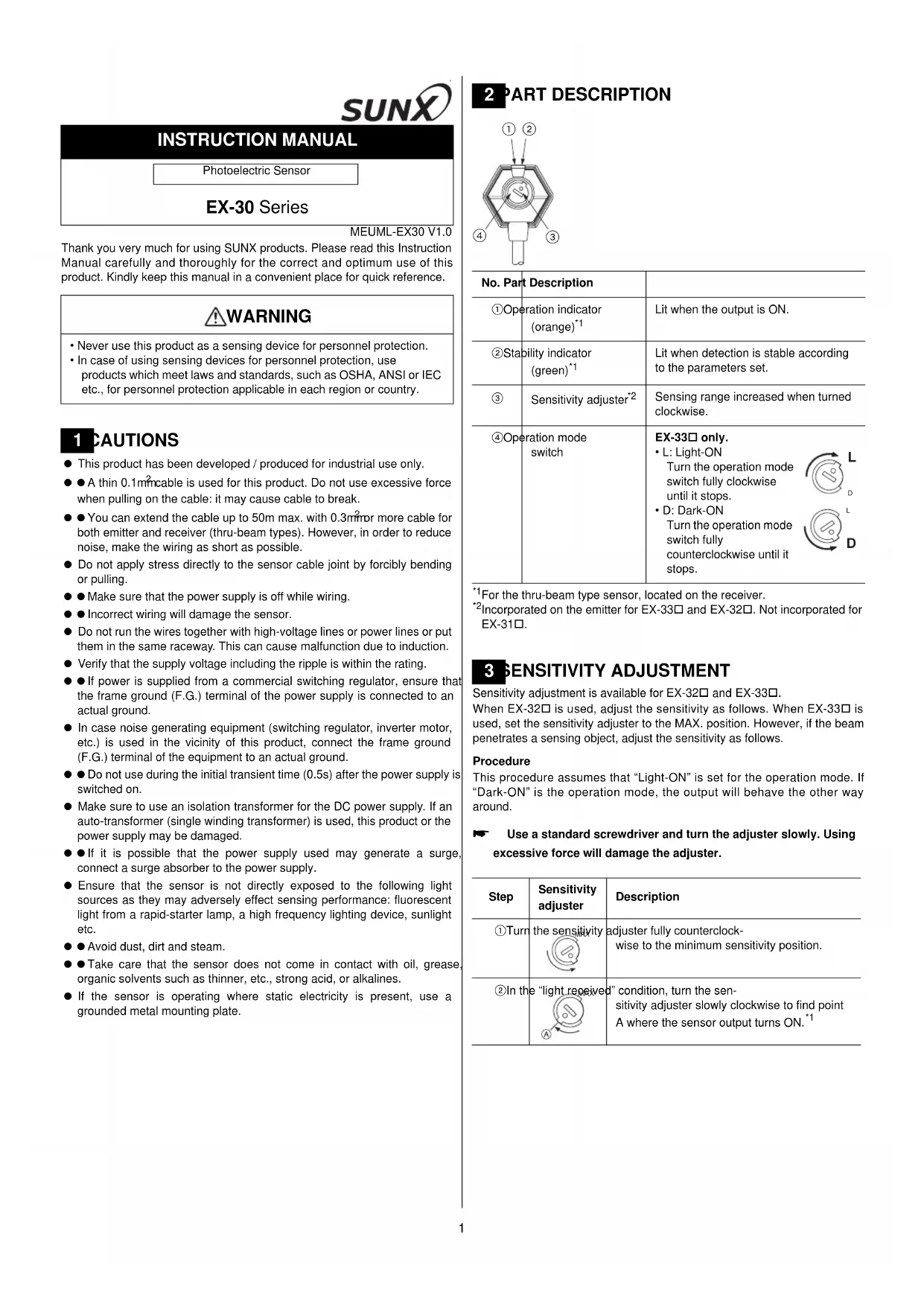 MEUML-EX30 V1.0 Thank you very much for using SUNX products. Please read this Instruction Manual carefully and thoroughly for the correct and optimum use of this product. Kindly keep this manual in a convenient place for quick reference. This product has been developed / produced for industrial use only. A thin 0.1mm