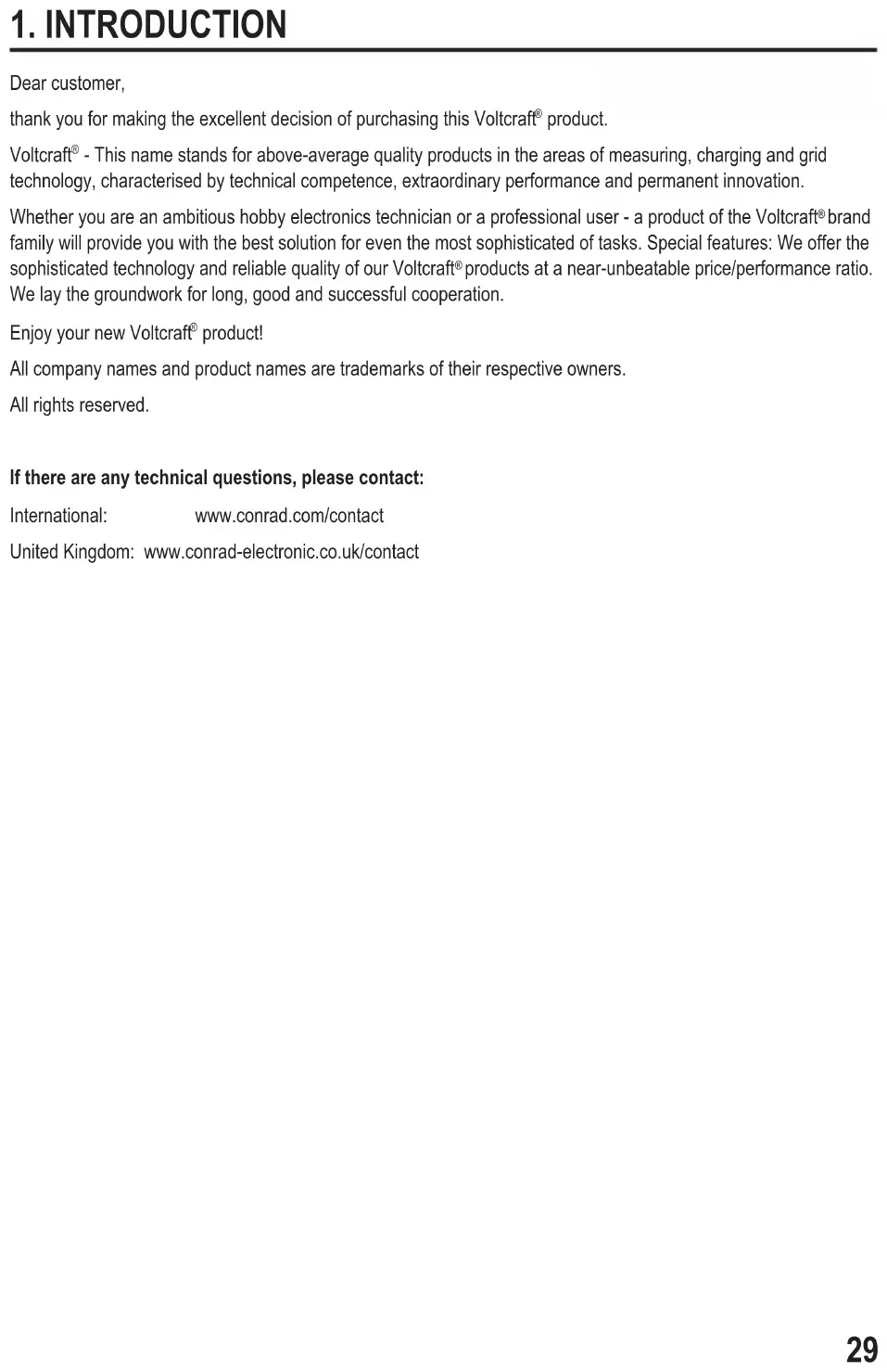 Dear customer, thank you for making the excellent decision of purchasing this Voltcraft