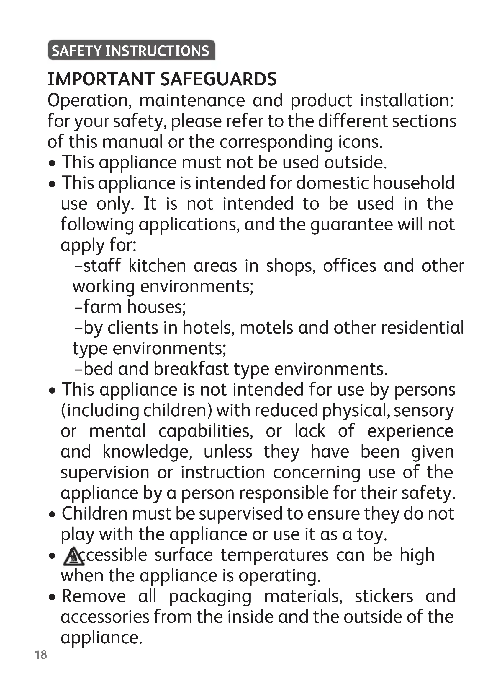 - Remove all packaging materials, stickers and accessories from the inside and the outside of the appliance. SAFETY INSTRUCTIONS 18EN