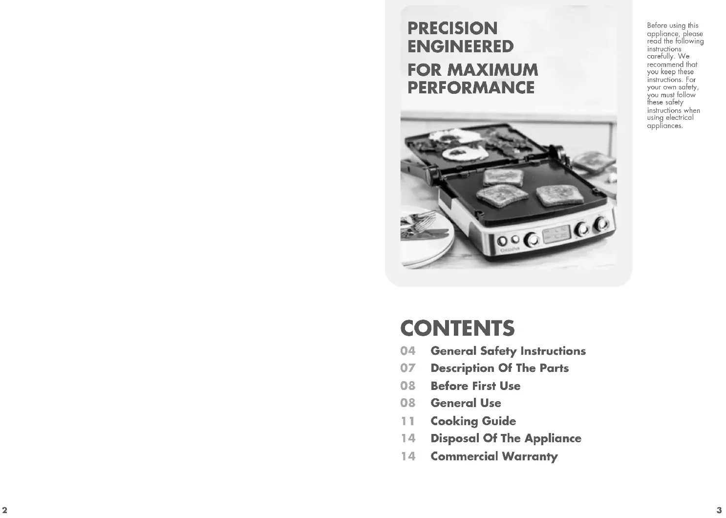 PRECISION ENGINEERED FOR MAXIMUM PERFORMANCE Before using this appliance, please read the following instructions carefully. We recommend that you keep these instructions. For your own safety, you must follow these safety instructions when using electrical appliances.4 5 GENERAL SAFETY INSTRUCTIONS