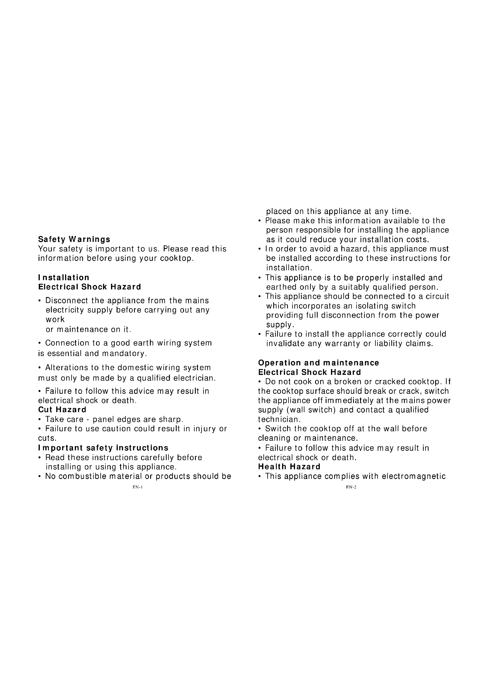 - Alterations to the domestic wiring system must only be made by a qualified electrician. EN-2 placed on this appliance at any time.