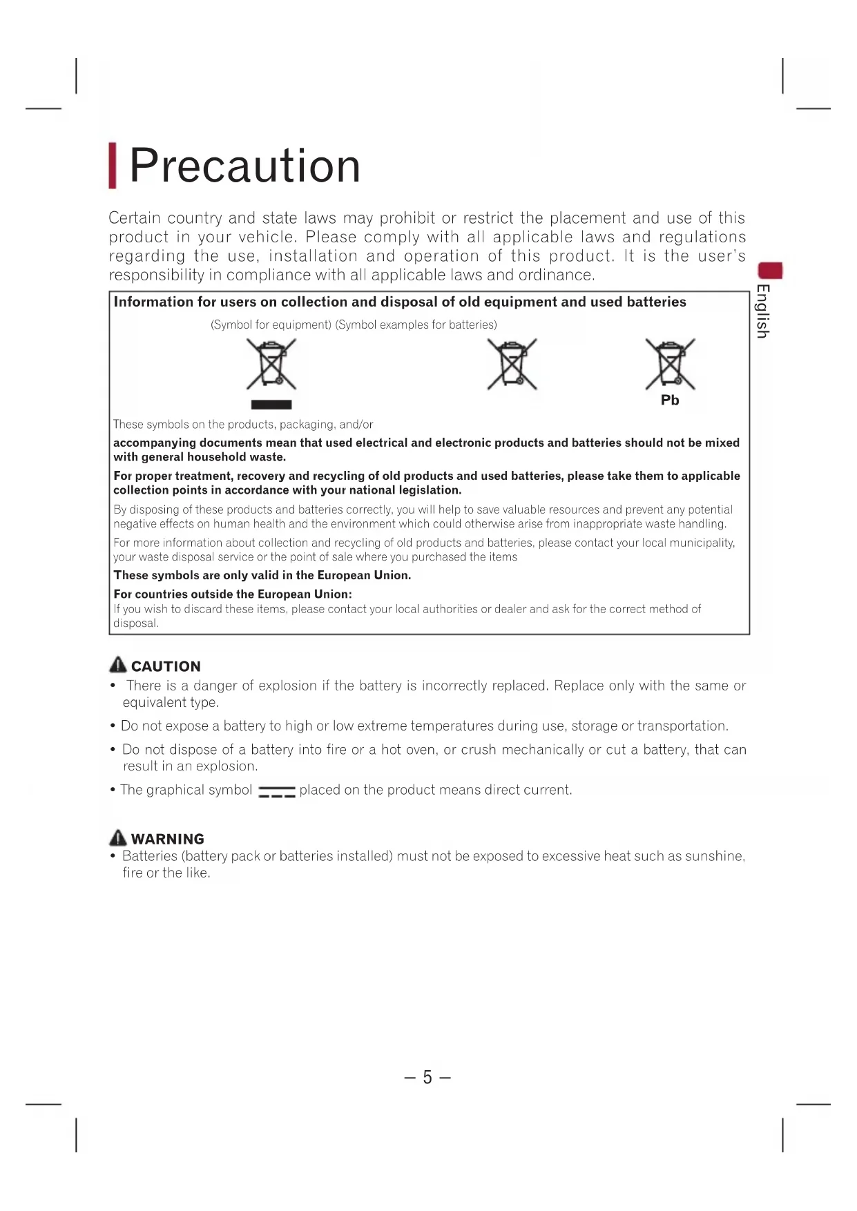- In this manual, Parking Mode is also referred to as Security Mode as the feature name.− 11 − English Usage Precautions Precautions When Handling this product