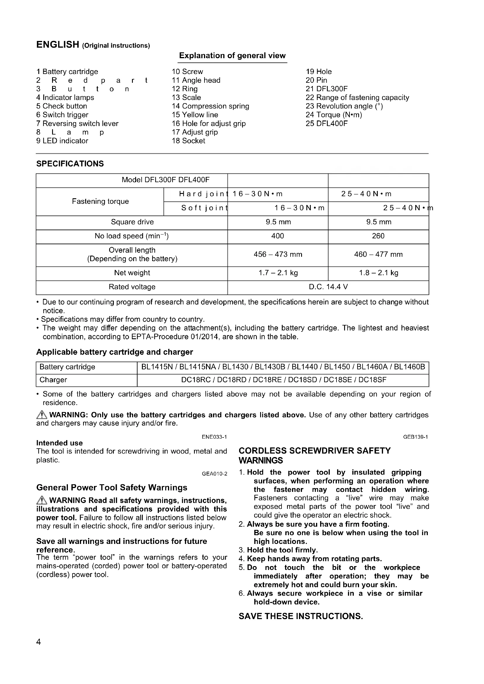 USER MANUAL DFL400F MAKITA