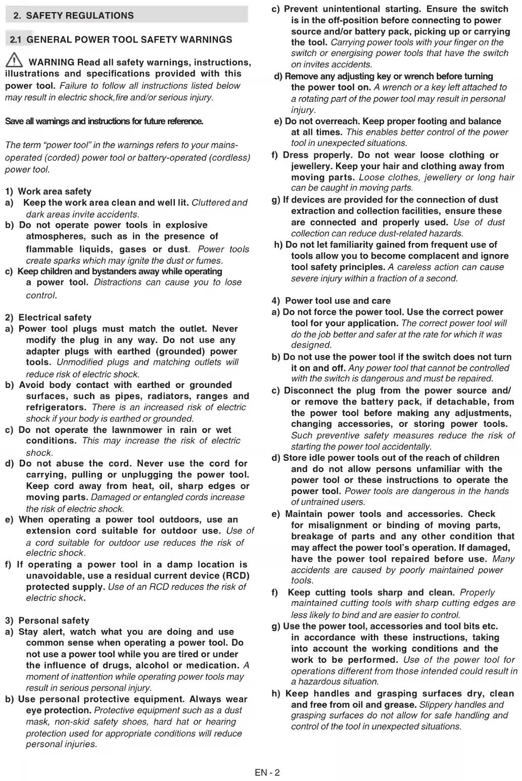 2.2 LAWNMOWER SAFETY WARNINGS