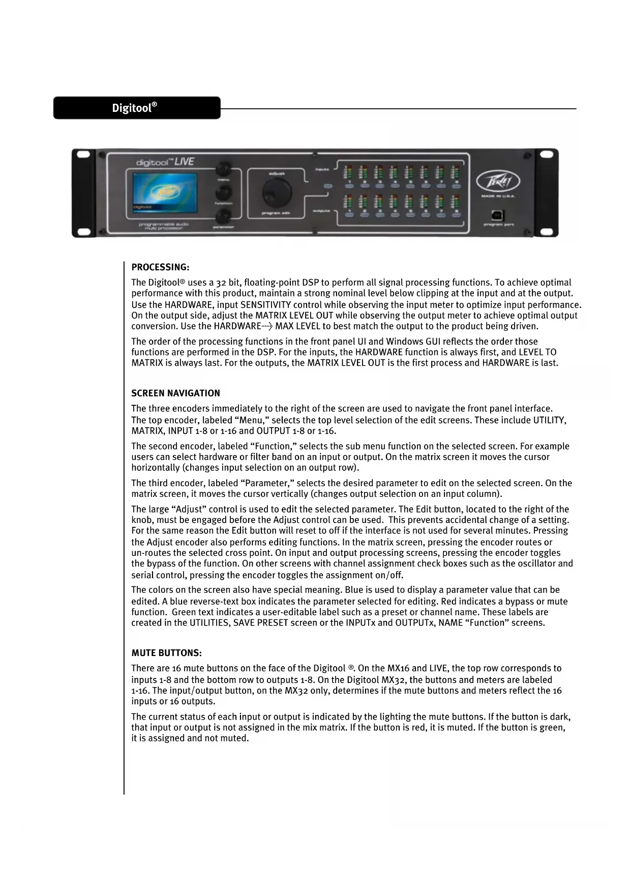Download the instructions for your Uncategorized in PDF format for free! Find your manual Digitool MX32 - PEAVEY and take your electronic device back in hand. On this page are published all the documents necessary for the use of your device. Digitool MX32 by PEAVEY.