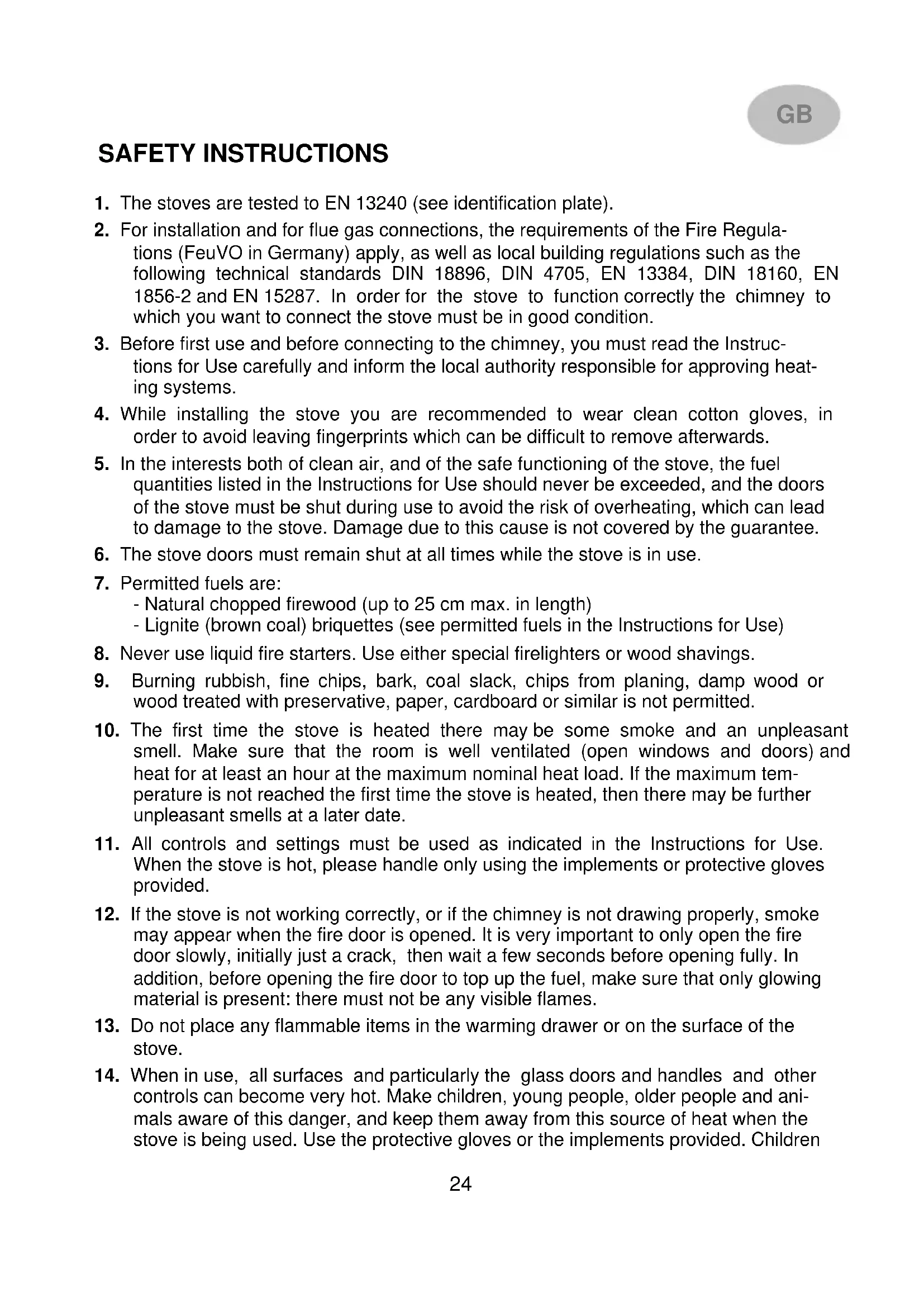 17. After each prolonged period of use for heating, have the stove checked by a profes-