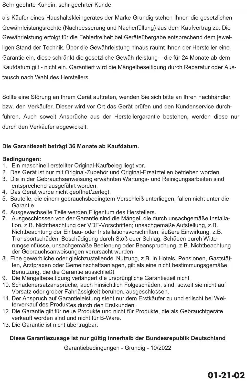 Diese Garantiezusage ist nur gültig innerhalb der Bundesrepublik Deutschland Garantiebedingungen - Grundig - 10/2022 01-21-02Please read this guide first! Dear Customer, Thank you for choosing a Grundig product. We would like you to achieve the optimal efficiency from this high quality product which has been manufactured with the state of the art technology. Please make sure you read and understand this guide and supplementary documentation fully before use and keep it as a reference. Include this guide with the unit if you hand it over to someone else. Observe all warnings and information herein and follow the instructions. Symbols and their meanings Following symbols have been used throughout this guide: