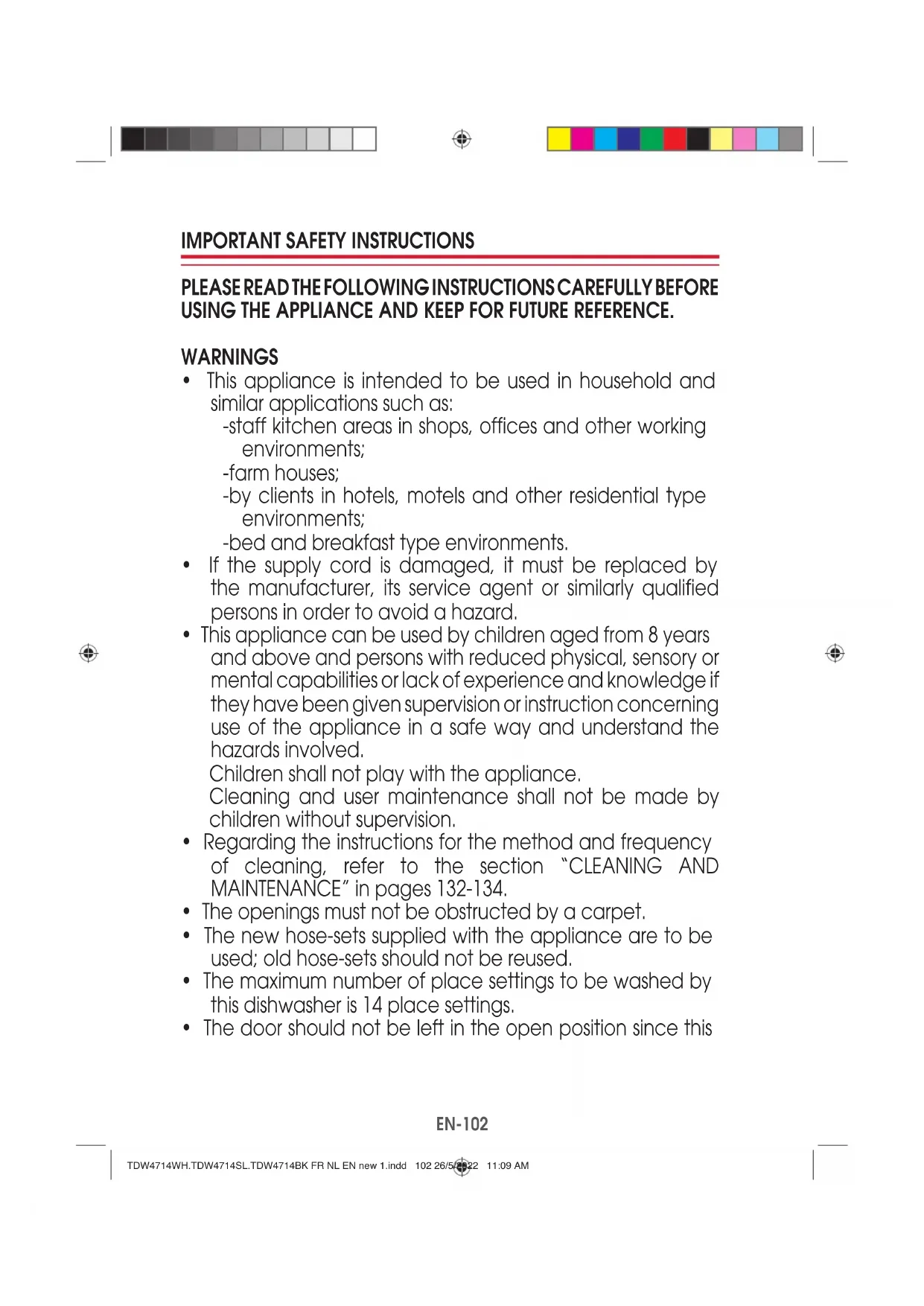 - The door should not be left in the open position since this TDW4714WH.TDW4714SL.TDW4714BK FR NL EN new 1.indd 102 26/5/2022 11:09 AMEN-103 could present a tripping hazard.