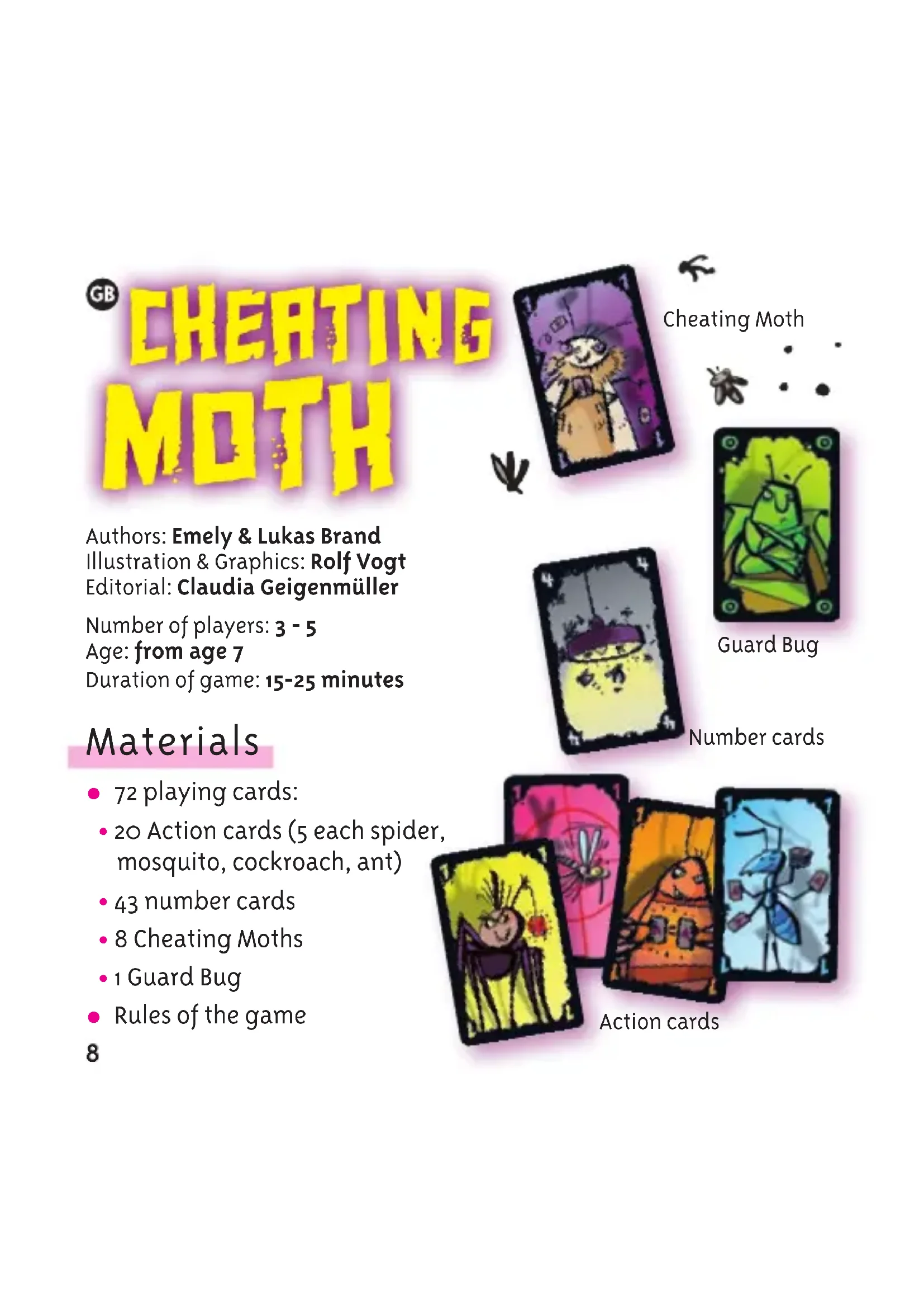 Rules of the game Cheating Moth Number cards Guard Bug Action cards MogelMotte_Anl_04.indd 8 20.07.11 12:559999