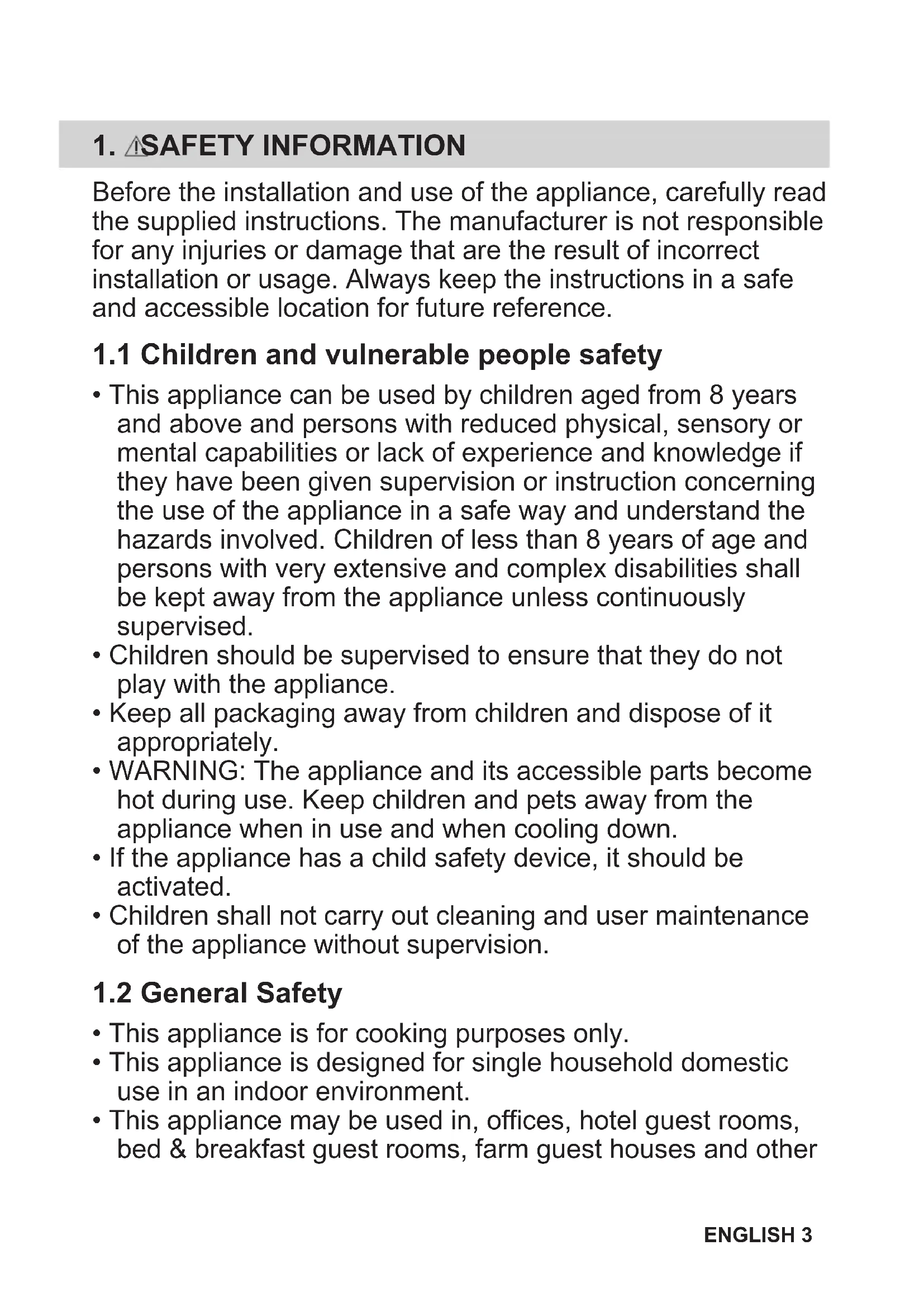 - This appliance may be used in, offices, hotel guest rooms, bed & breakfast guest rooms, farm guest houses and other ENGLISH 3similar accommodation where such use does not exceed (average) domestic usage levels.