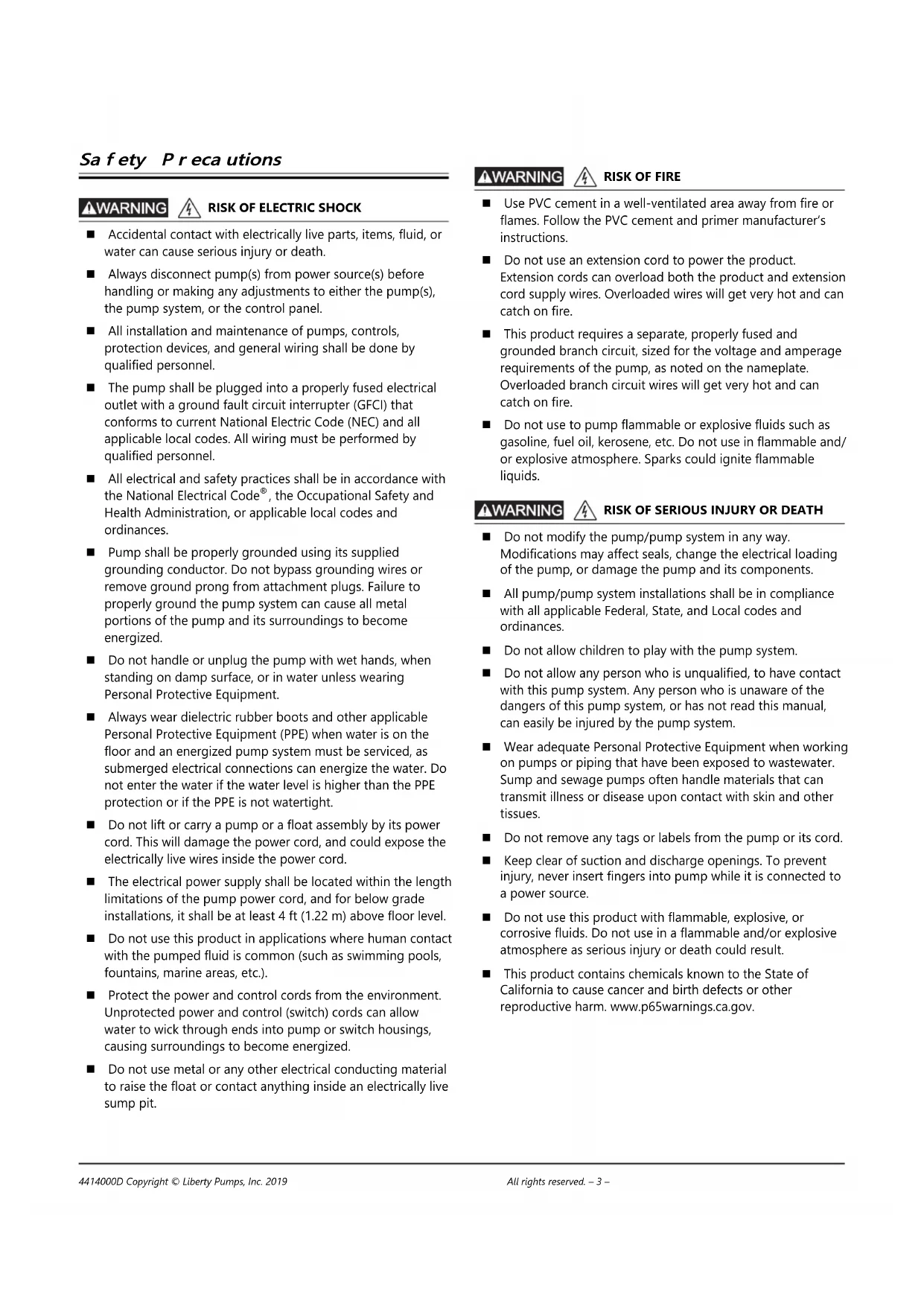 3– 8 – Copyright © Liberty Pumps, Inc. 2019 All rights reserved. 4414000D