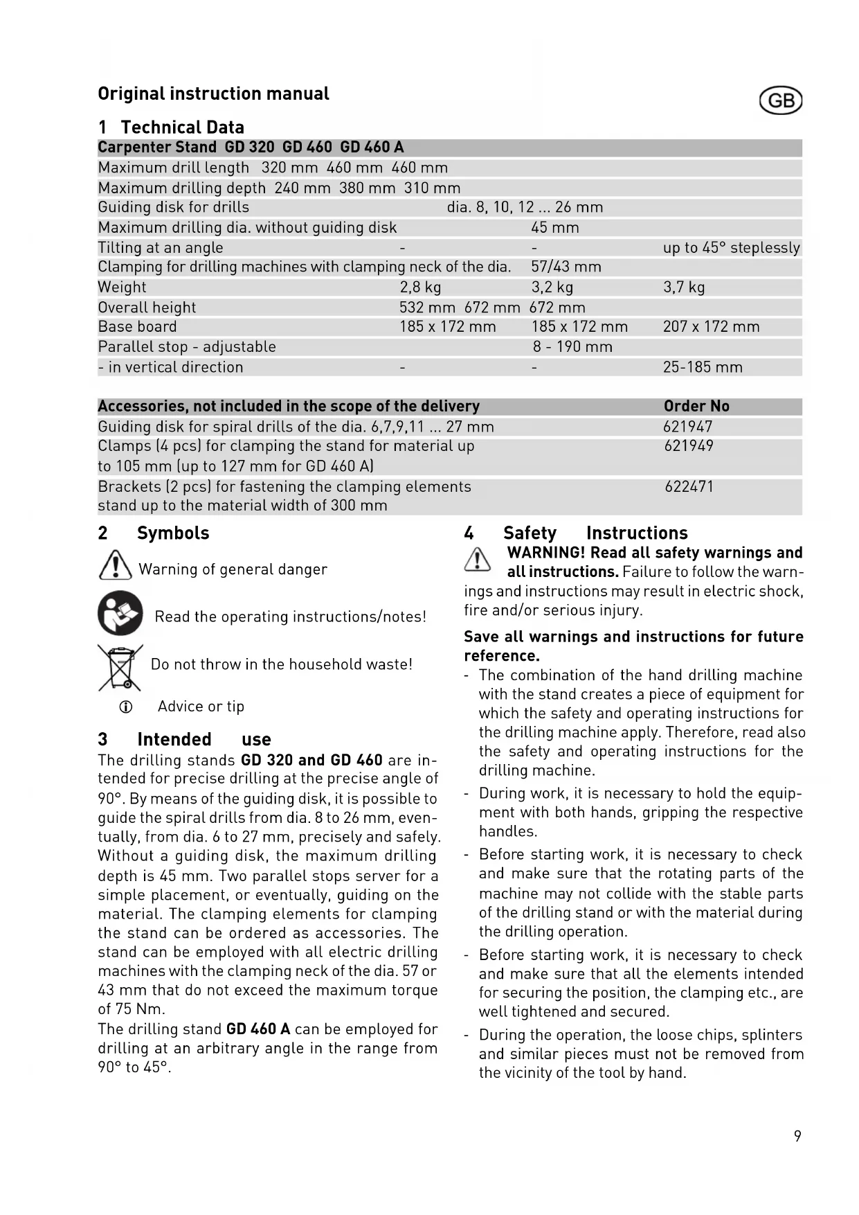 Download the instructions for your Drill in PDF format for free! Find your manual GD 460 A - FESTOOL and take your electronic device back in hand. On this page are published all the documents necessary for the use of your device. GD 460 A by FESTOOL.